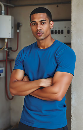 - Camiseta de manga corta, cuello redondo y corte regular, en tejido grueso y resistente.