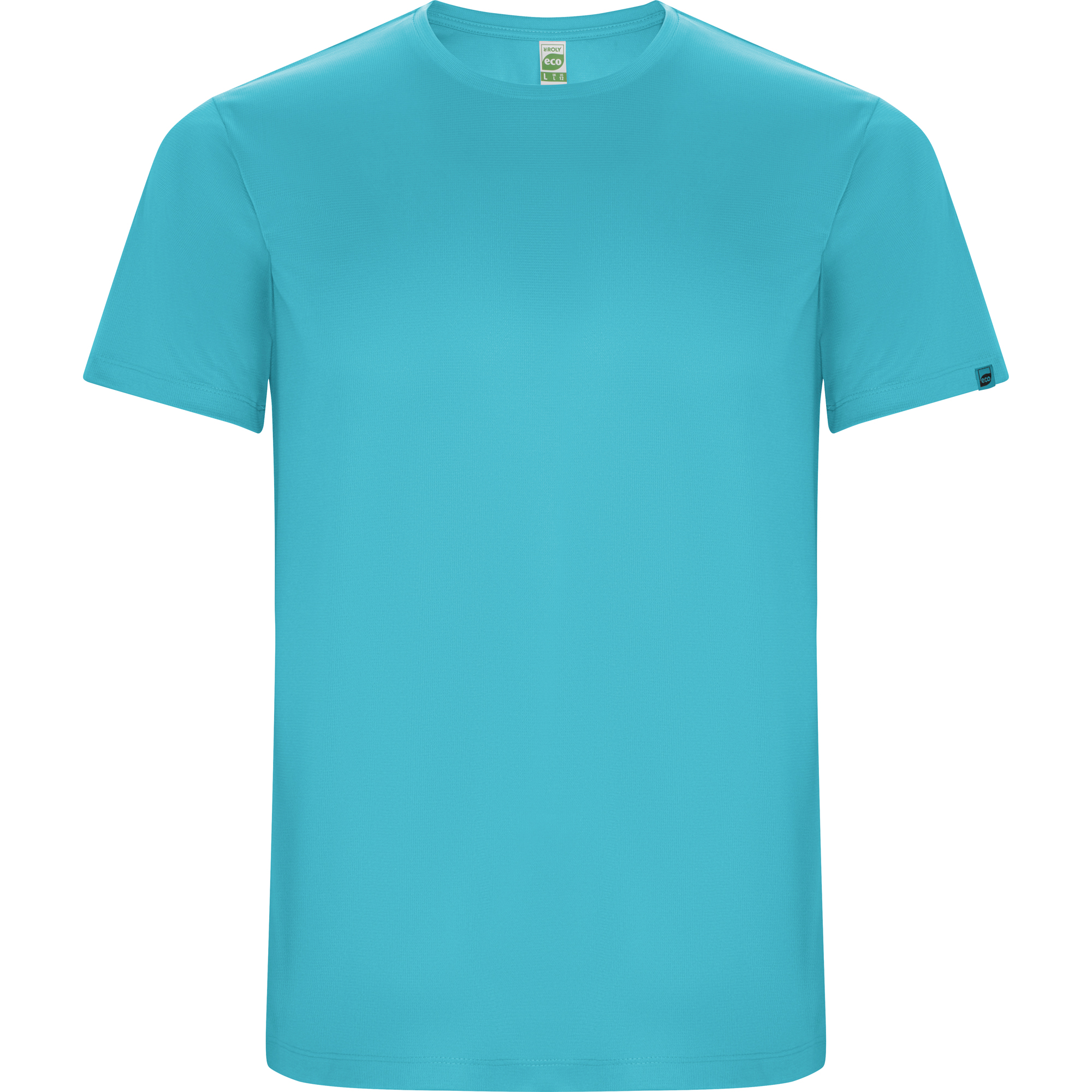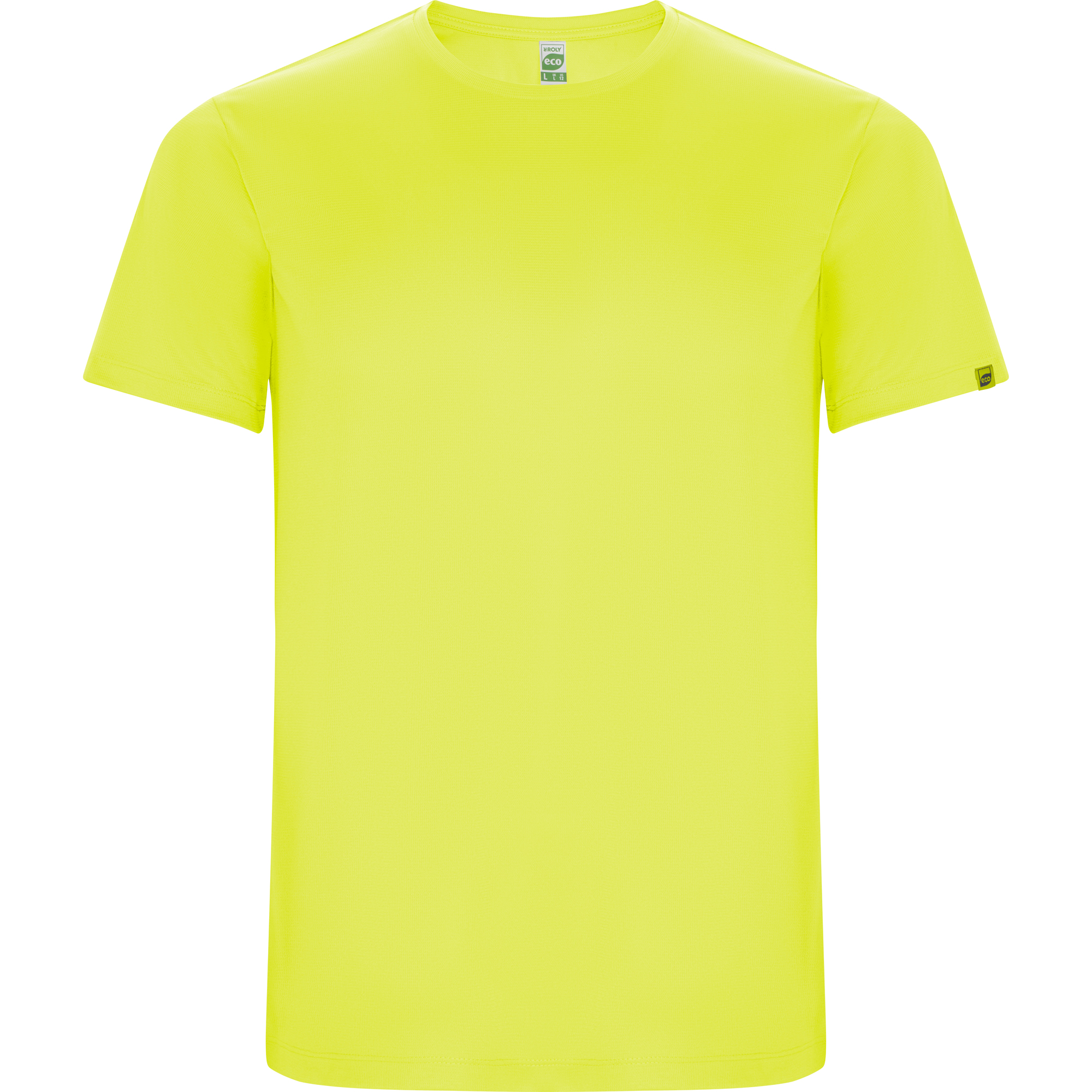 Camiseta técnica de manga corta con tejido de poliéster Reciclado CONTROL DRY. Cuello redondo con cubrecosturas a tono. Etiqueta identificativa con logo ECO en manga. Embolsado en material reciclado.
