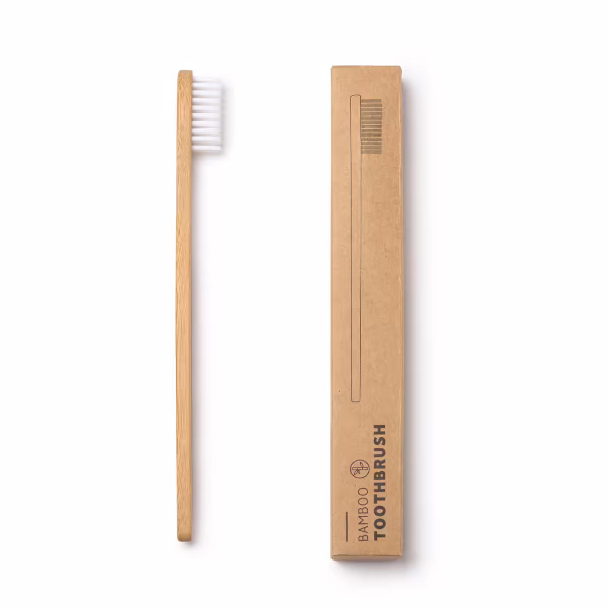 Cepillo dental línea ECO fabricado en bambú, con cerdas de plástico blanco. Tipo de dureza suave. Bambú sin aditivos BPA, 100% biodegradable.