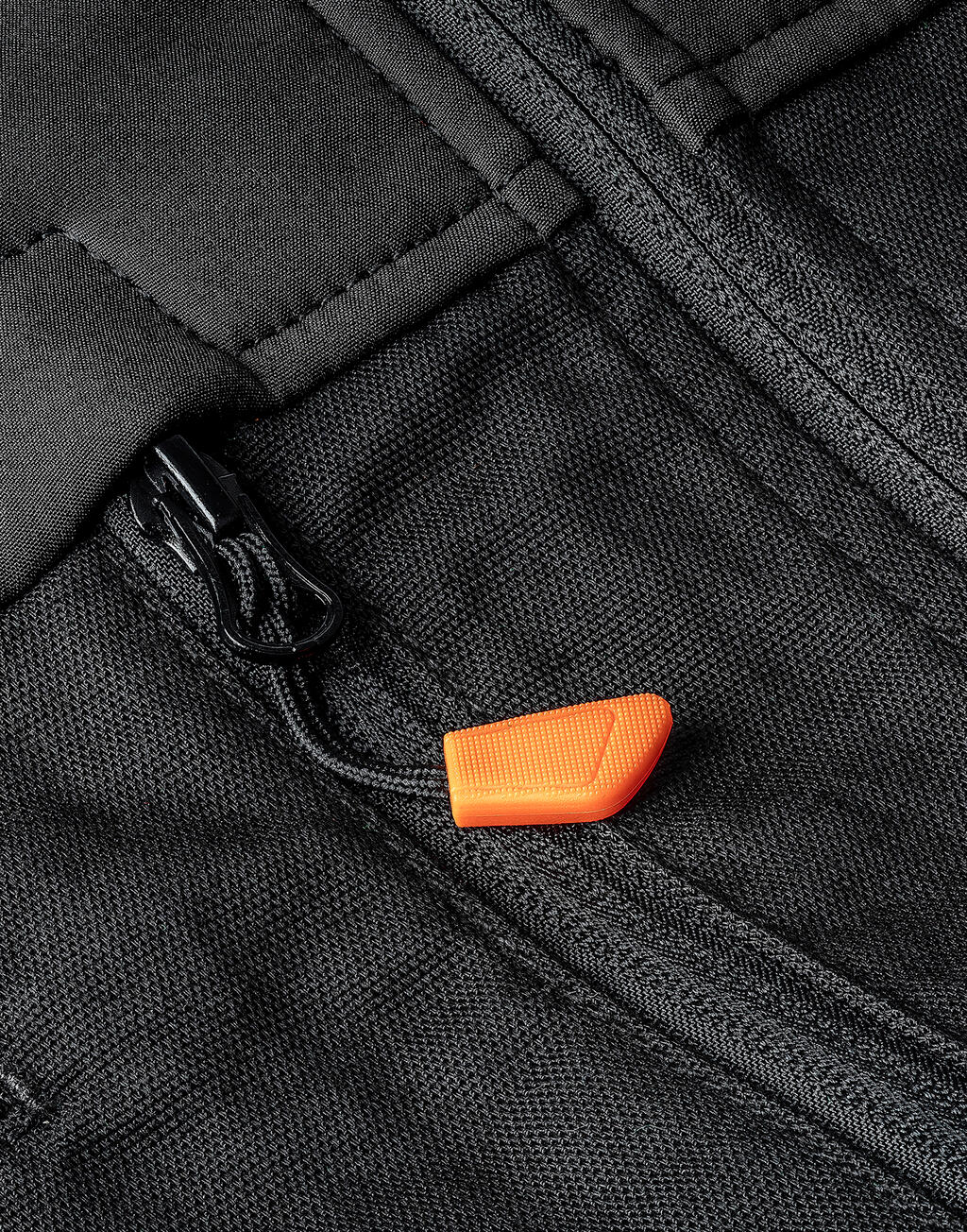 - Bolsillos en pecho y laterales con cremallera, bolsillo en la manga con cremallera con detalle reflectante