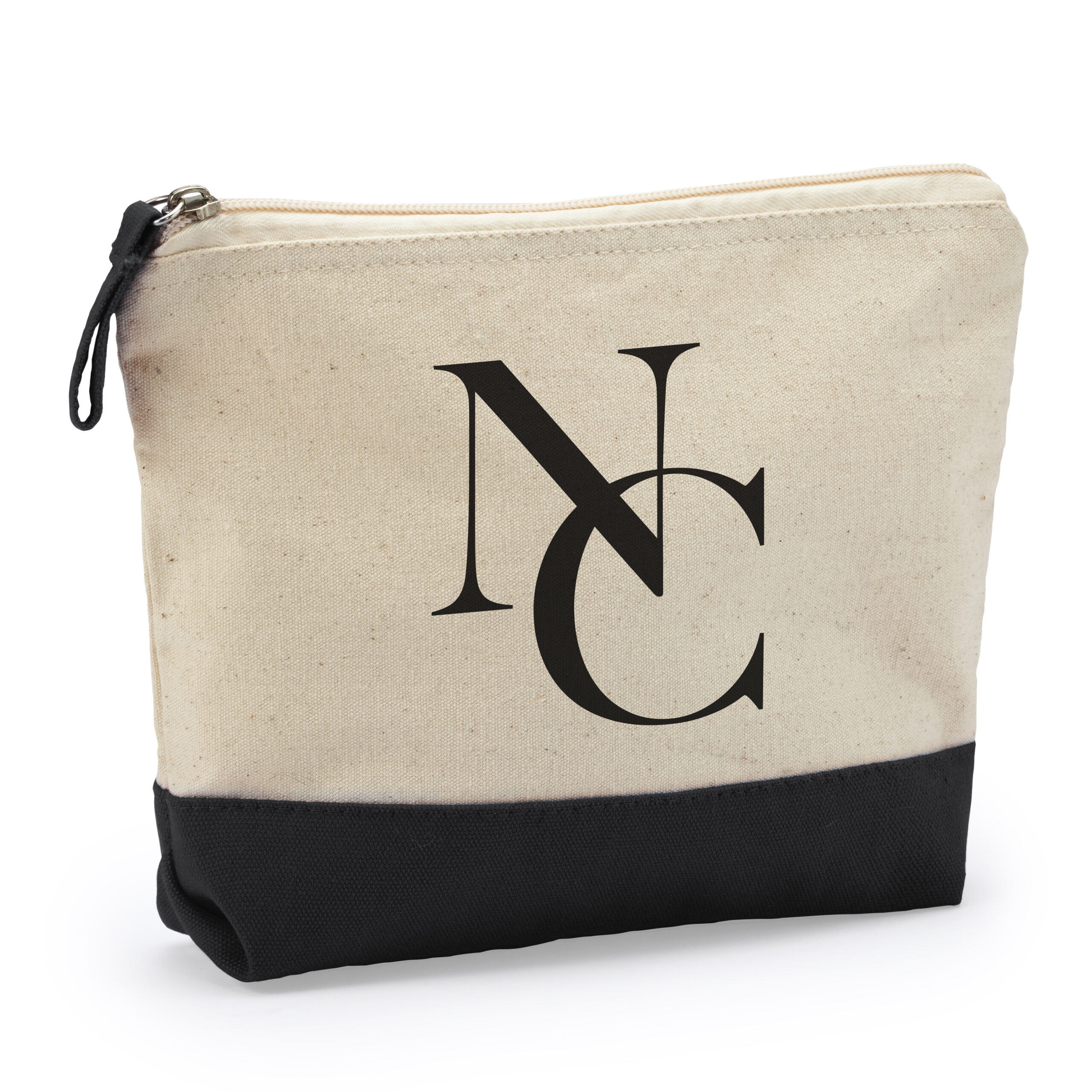 Neceser multiusos de algodón de 280 g/m² con acabado bicolor y cremallera con tirador de algodón a juego.
