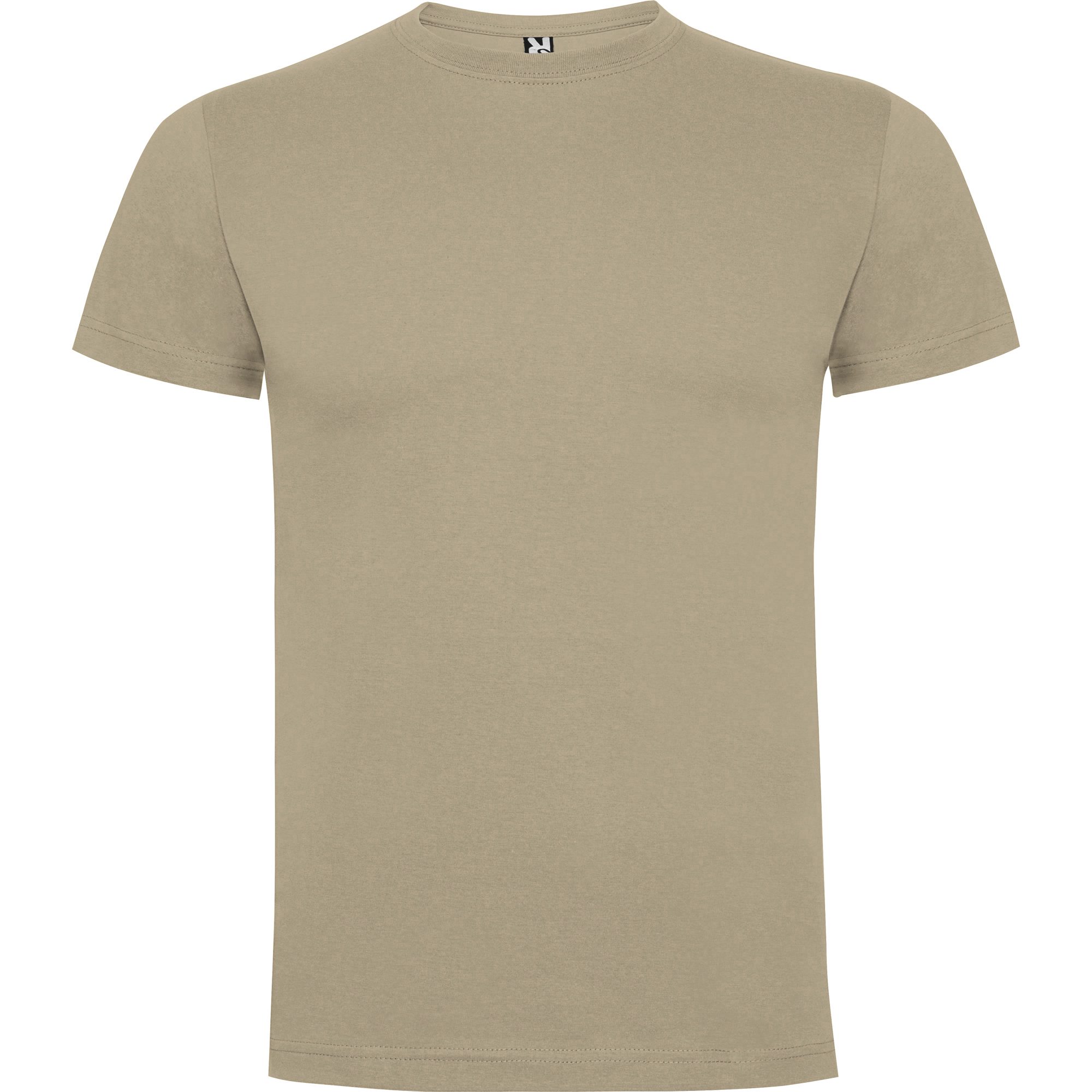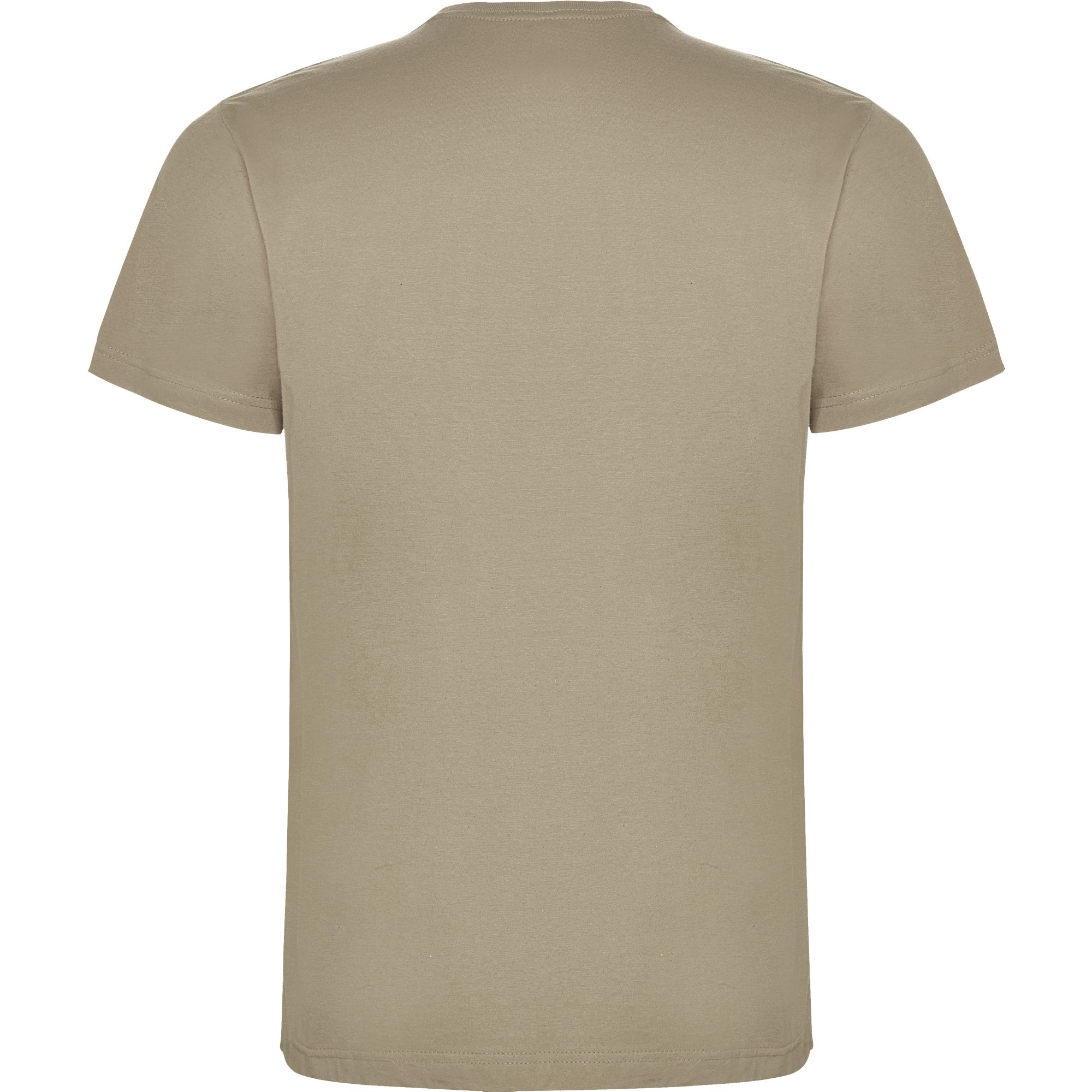 Camiseta de manga corta con costuras laterales. Cuello redondo en canalé 1×1 (4 capas). Cubrecosturas en cuello del mismo tejido.