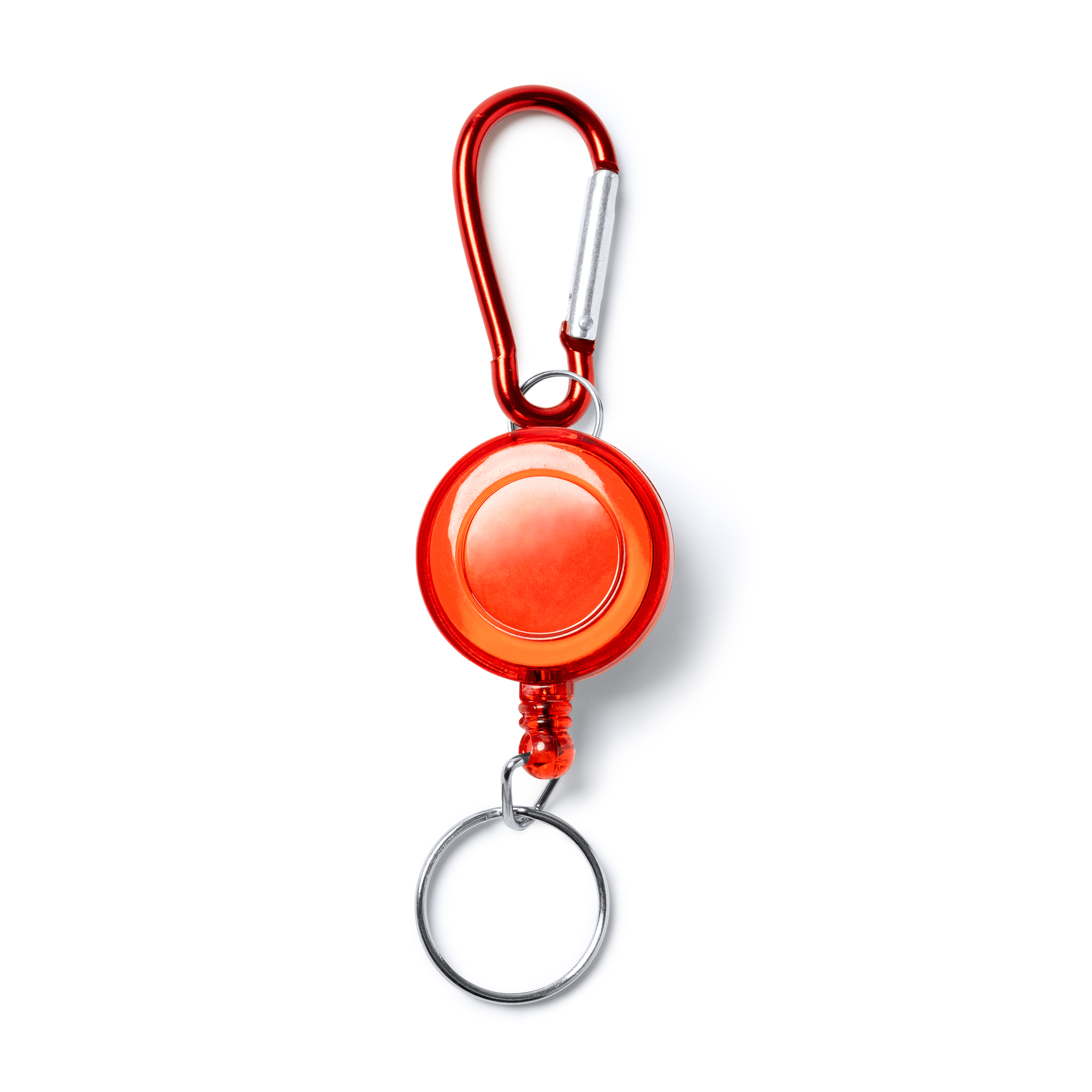 Llavero rollerclip con mosquetón y anilla retráctil extensible.
