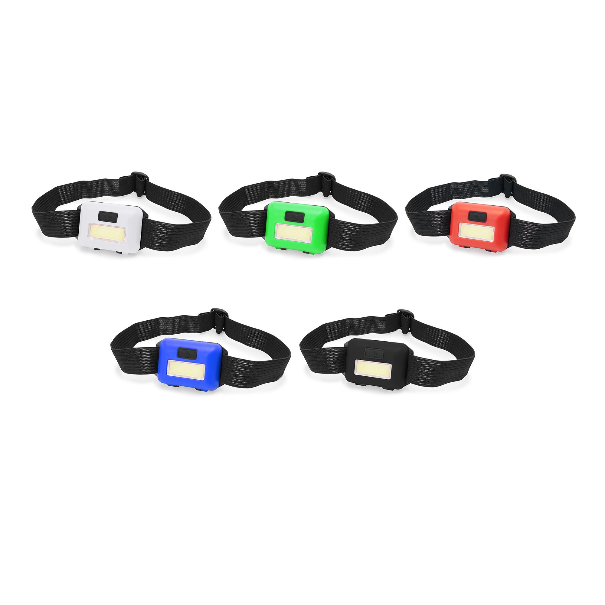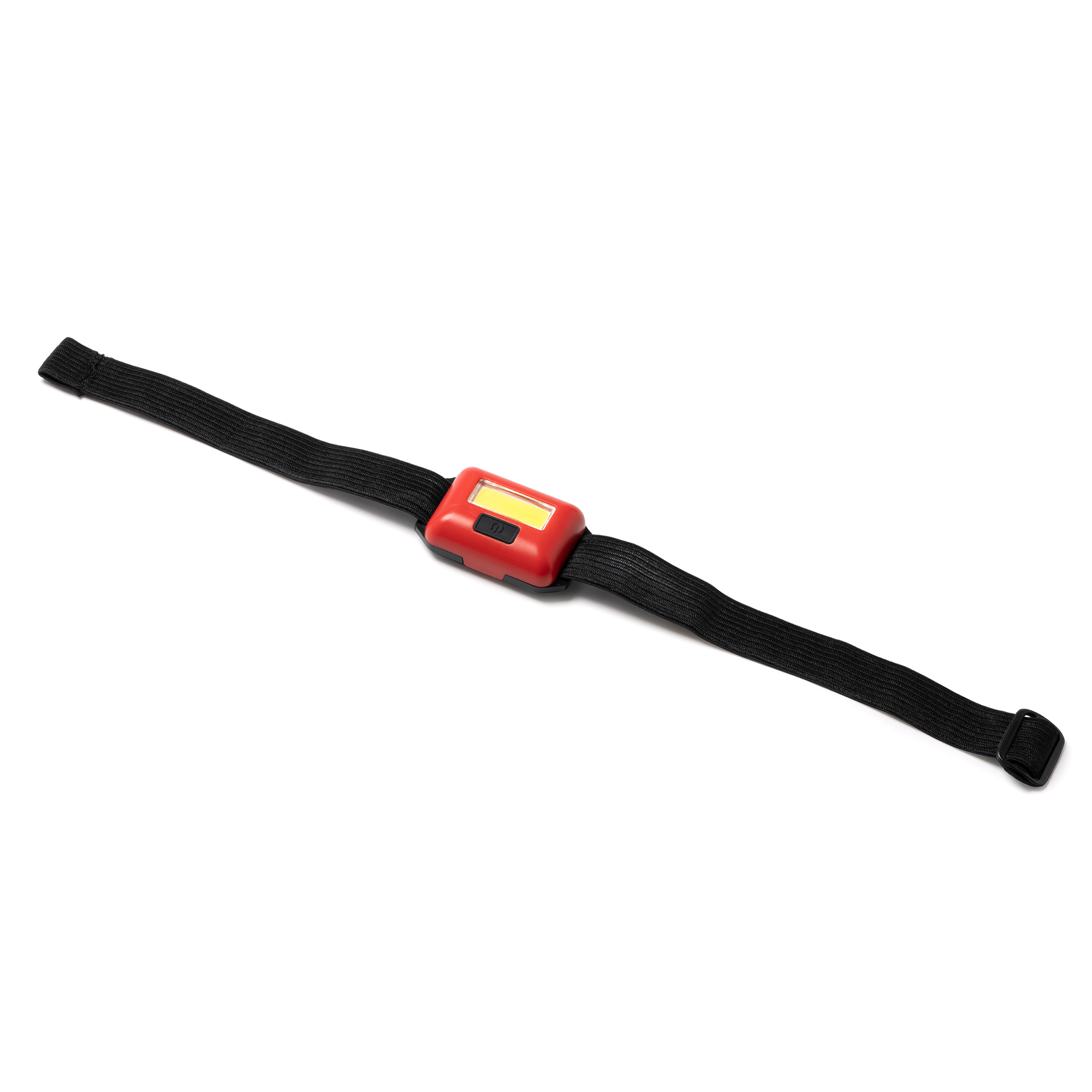 Linterna deportiva con cinta para ajuste multiusos. Cuenta con 8 luces LED COB con 3 modos de iluminación (2 directos + 1 parpadeo). Funcionamiento con 3 Pilas AAA (no incluidas).