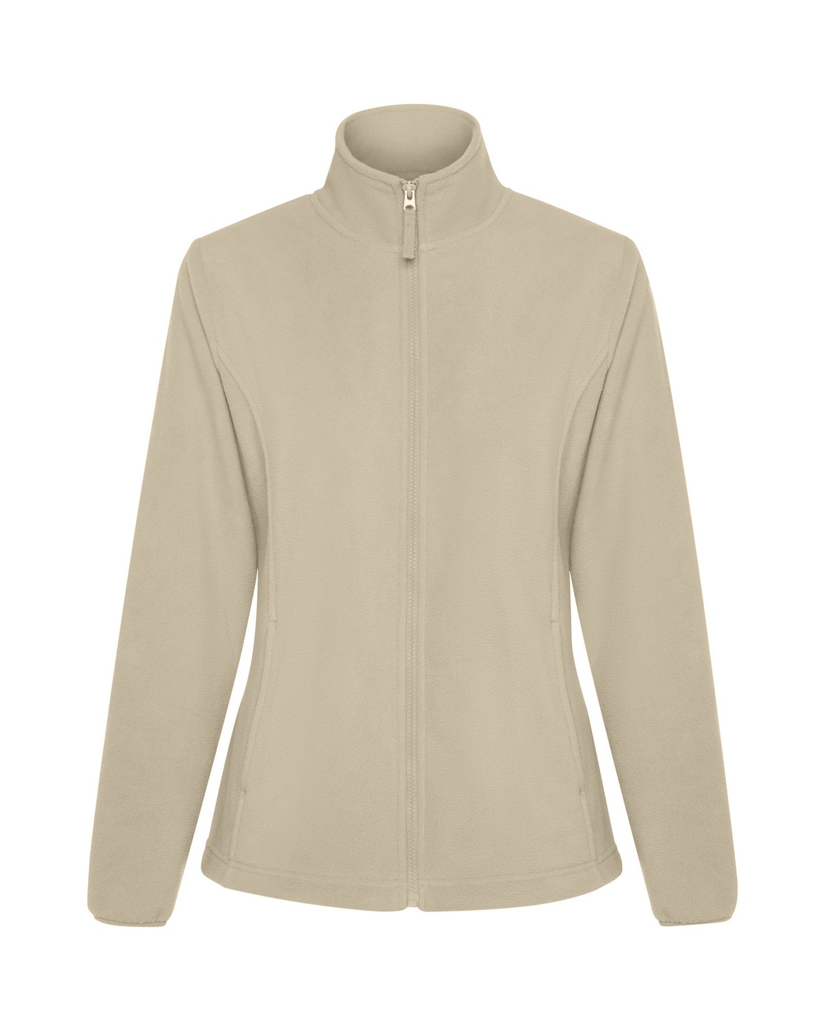 Chaqueta polar con cremallera frontal de mujer. Cuello alto. Puños con vivo elástico. Bolsillos con cremallera integrados en costuras de los paneles laterales. Cubrecosturas en cinta de espiga. Todos los accesorios al tono. Ajustadores laterales en el interior.