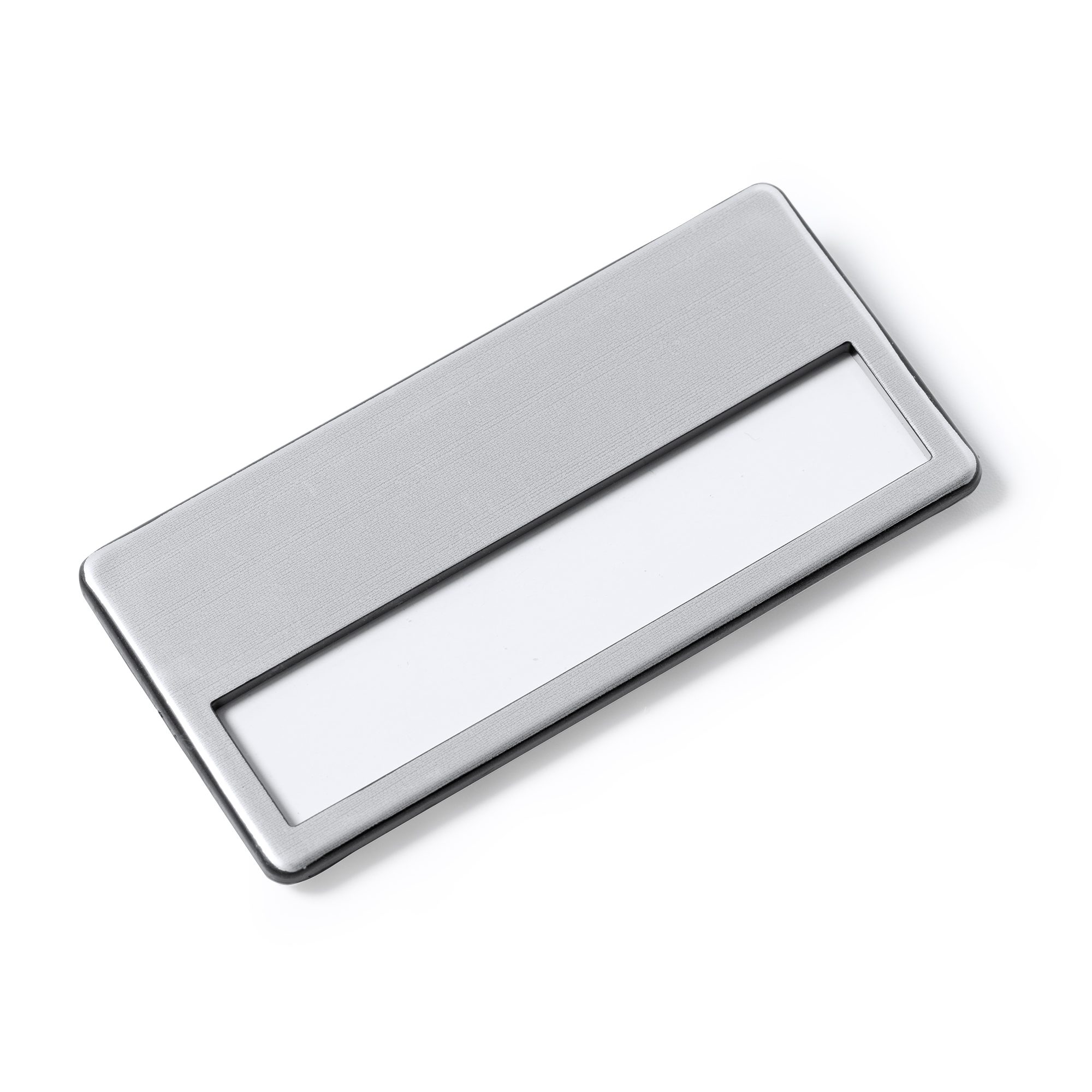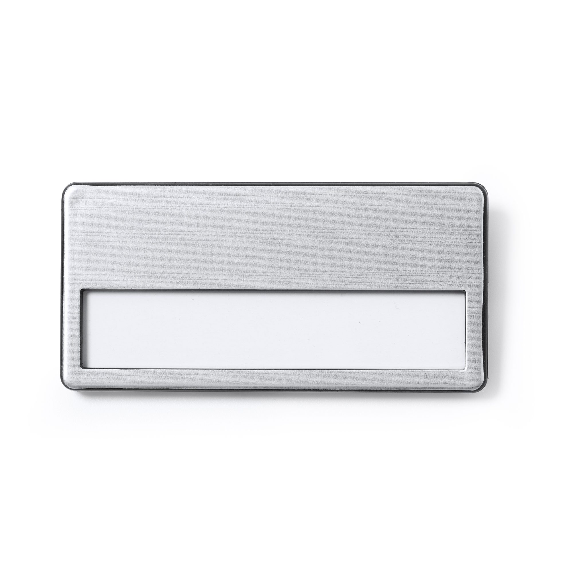Identificador con frontal de aluminio. Doble sistema de fijación.