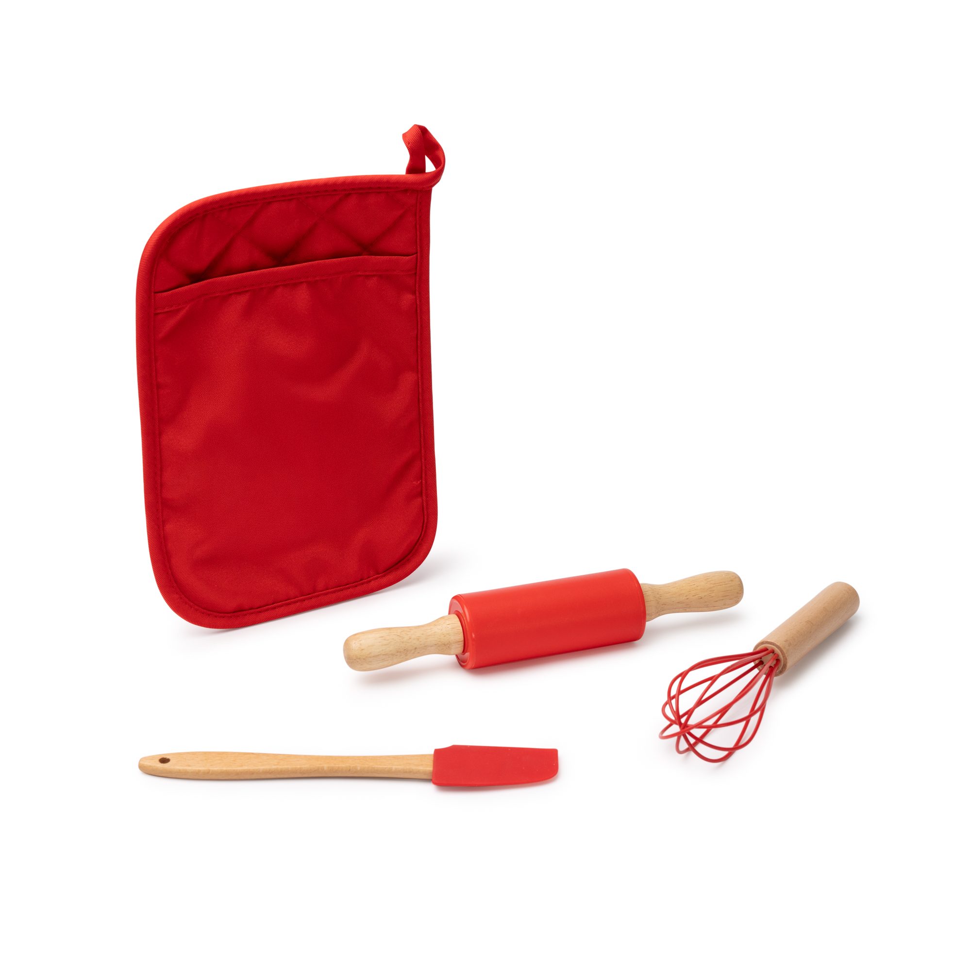 Set de cocina compuesto por 3 piezas para elaborar galletas en casa. Incluye rodillo, varilla y espátula con diseño navideño. Incluye funda multiusos donde se introducen los elementos del set para su guardado.