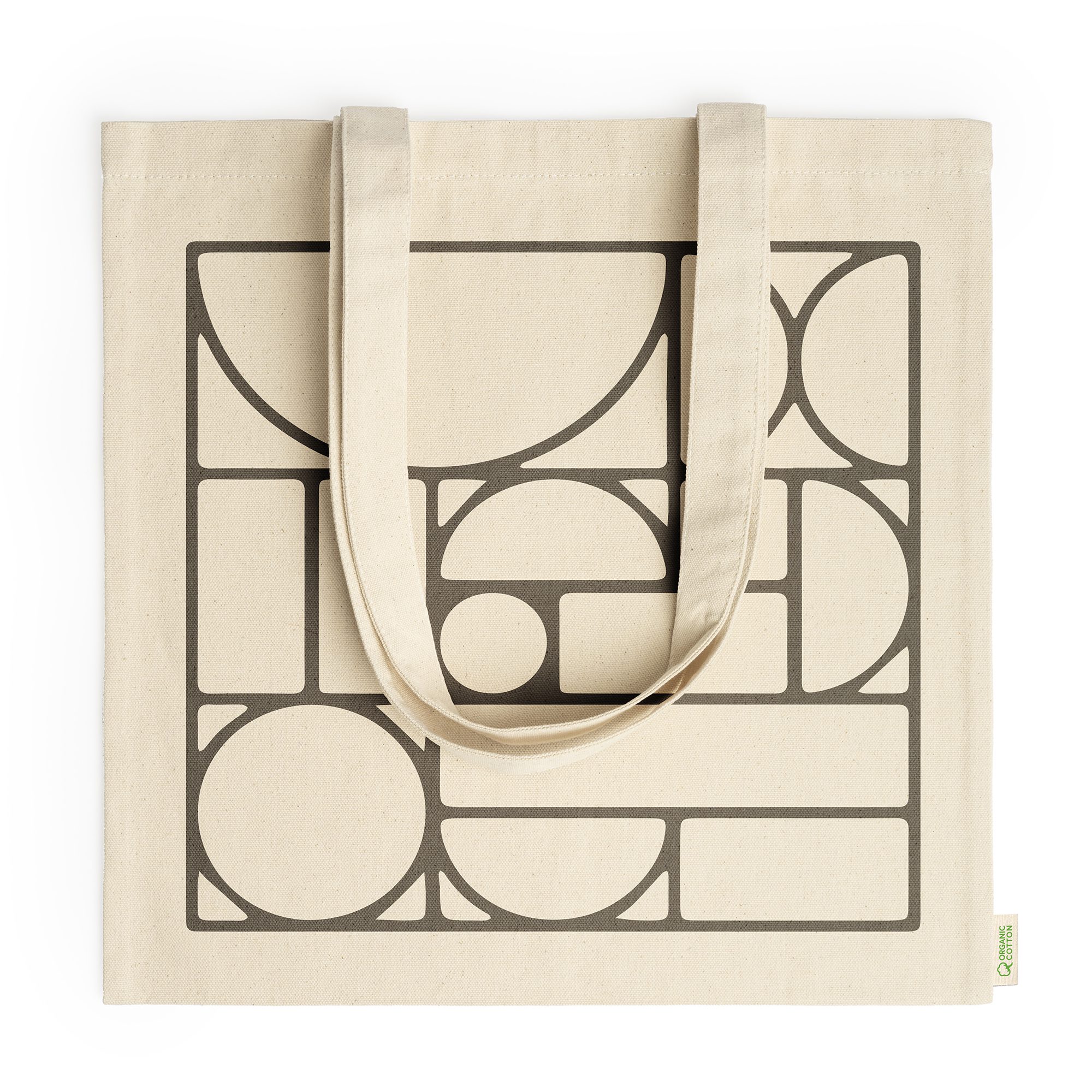 Bolsa 100% algodón orgánico de 300 g/m² con prácticas asas largas de 70cm.