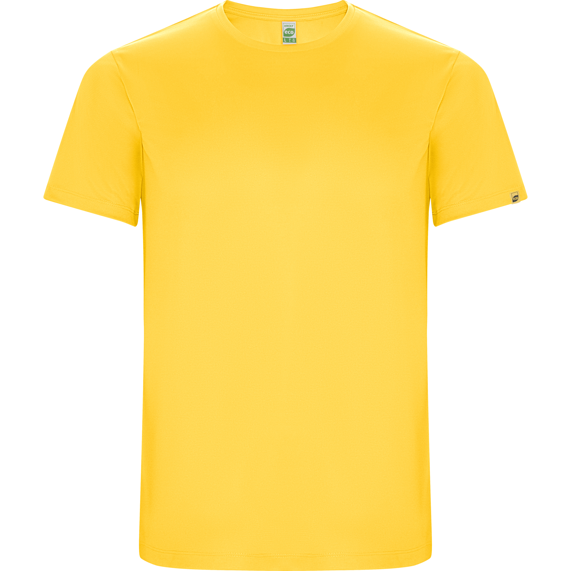 Camiseta técnica manga corta transpirable. Poliéster reciclado. Roly Control Dry. Cuello redondo y cubrecosturas del mismo tejido al tono. Etiqueta tejida eco. Certificado GRS.