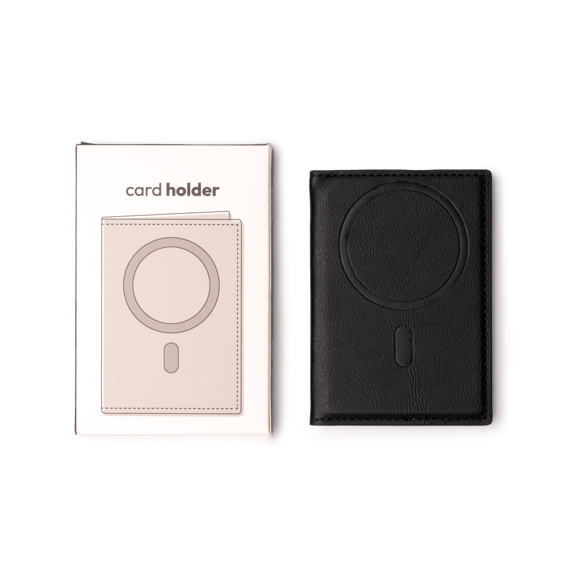 Tarjetero magnético plegable elaborado en PU reciclado. Accesorio ideal para llevar tus tarjetas junto a tu teléfono gracias a su sistema magnético.