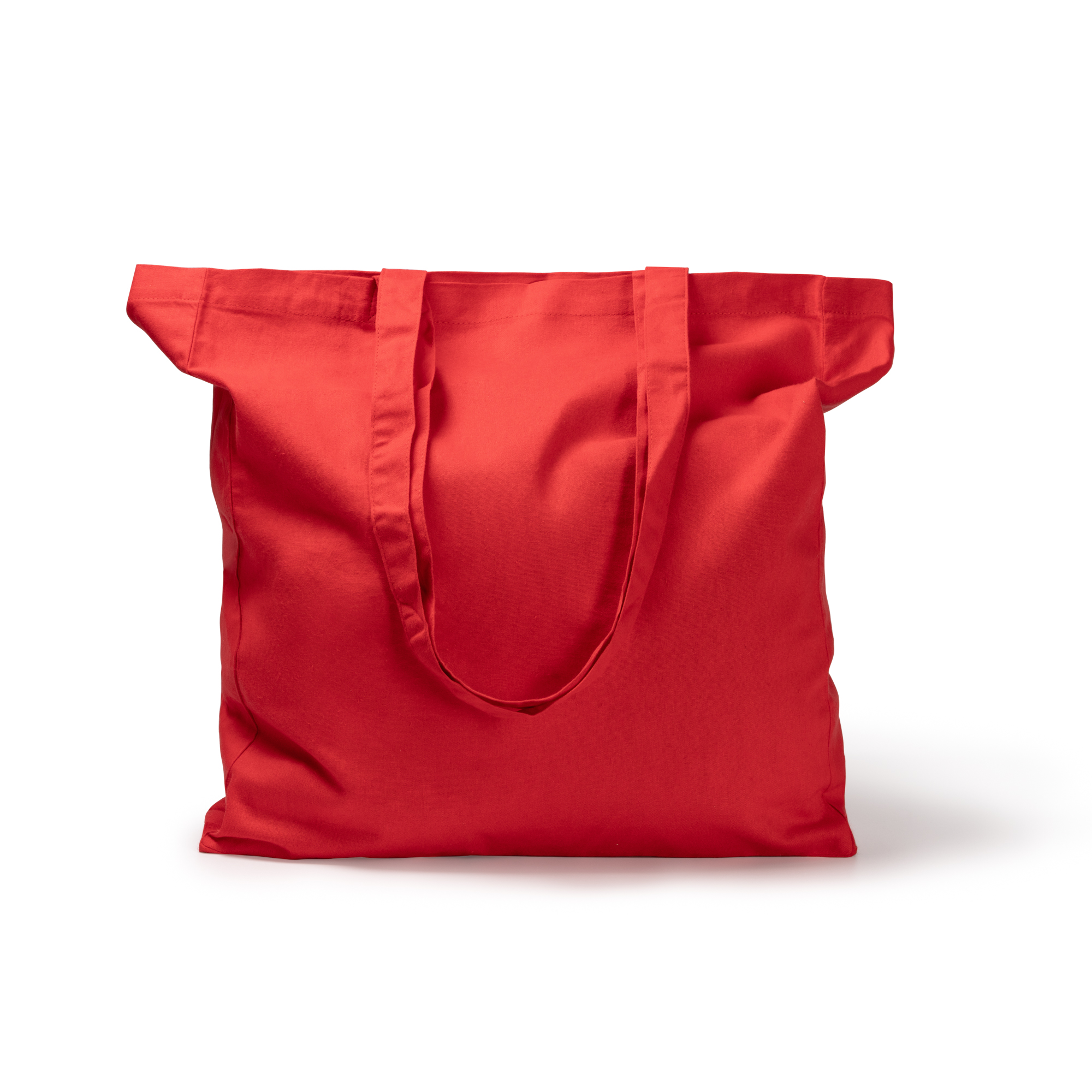 Práctica bolsa 100% algodón de 180 g/m² a color con fuelle en base y laterales para hacerla más volátil y adaptable. Cuenta con asas de 70cm para optimizar su transporte.