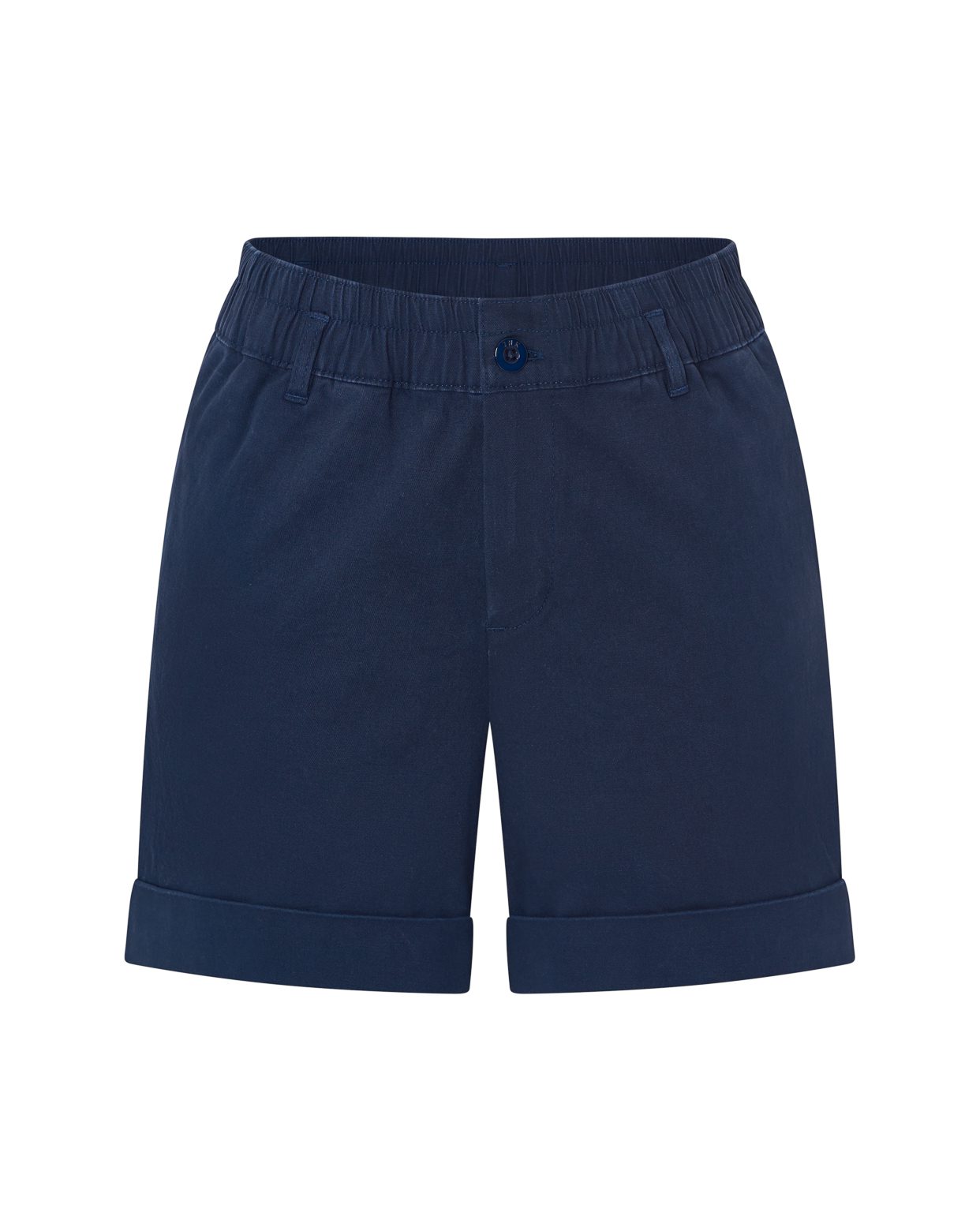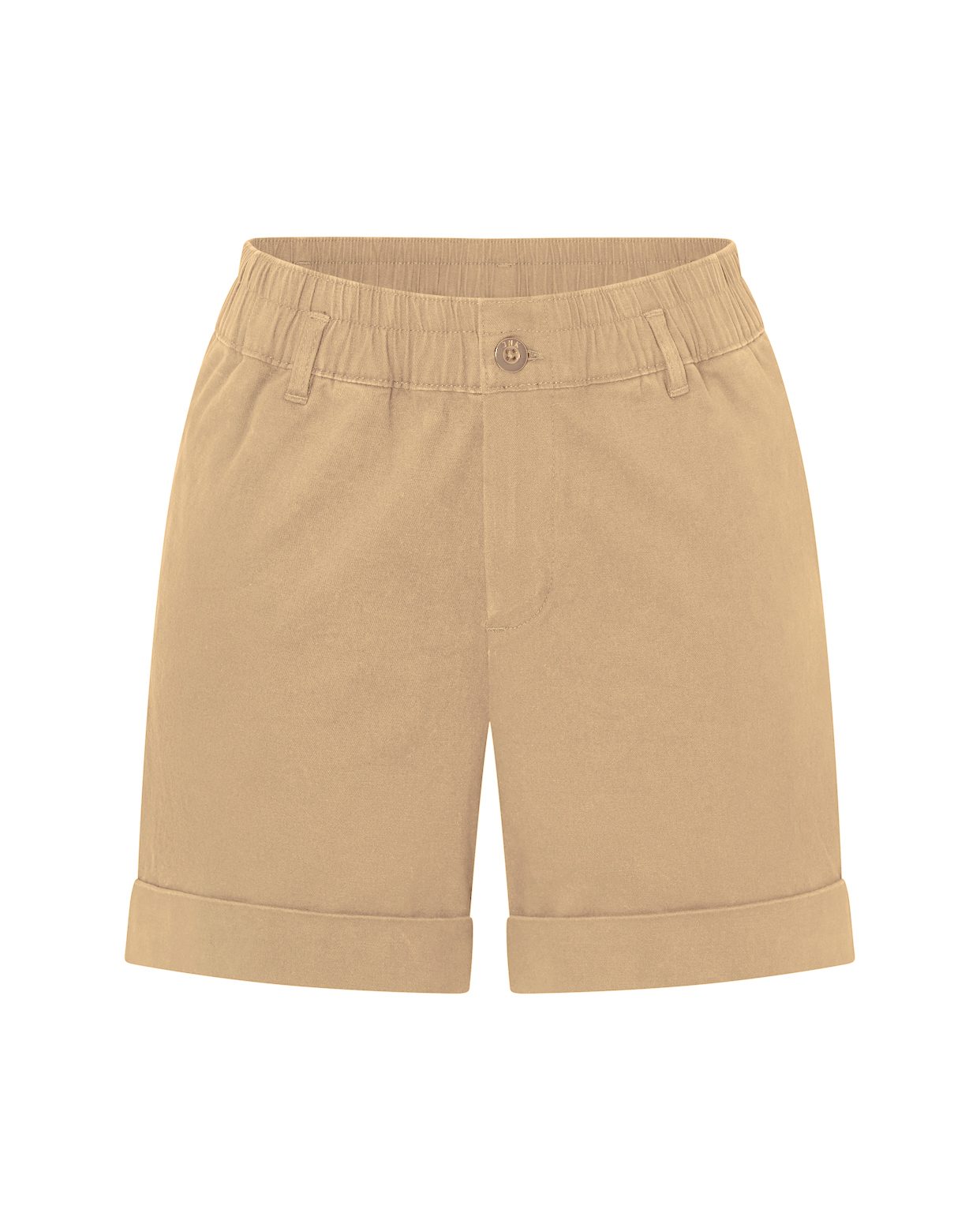 Pantalón corto de mujer. Cintura elástica con cremallera y botón. Cinco trabillas y cremallera a tono.