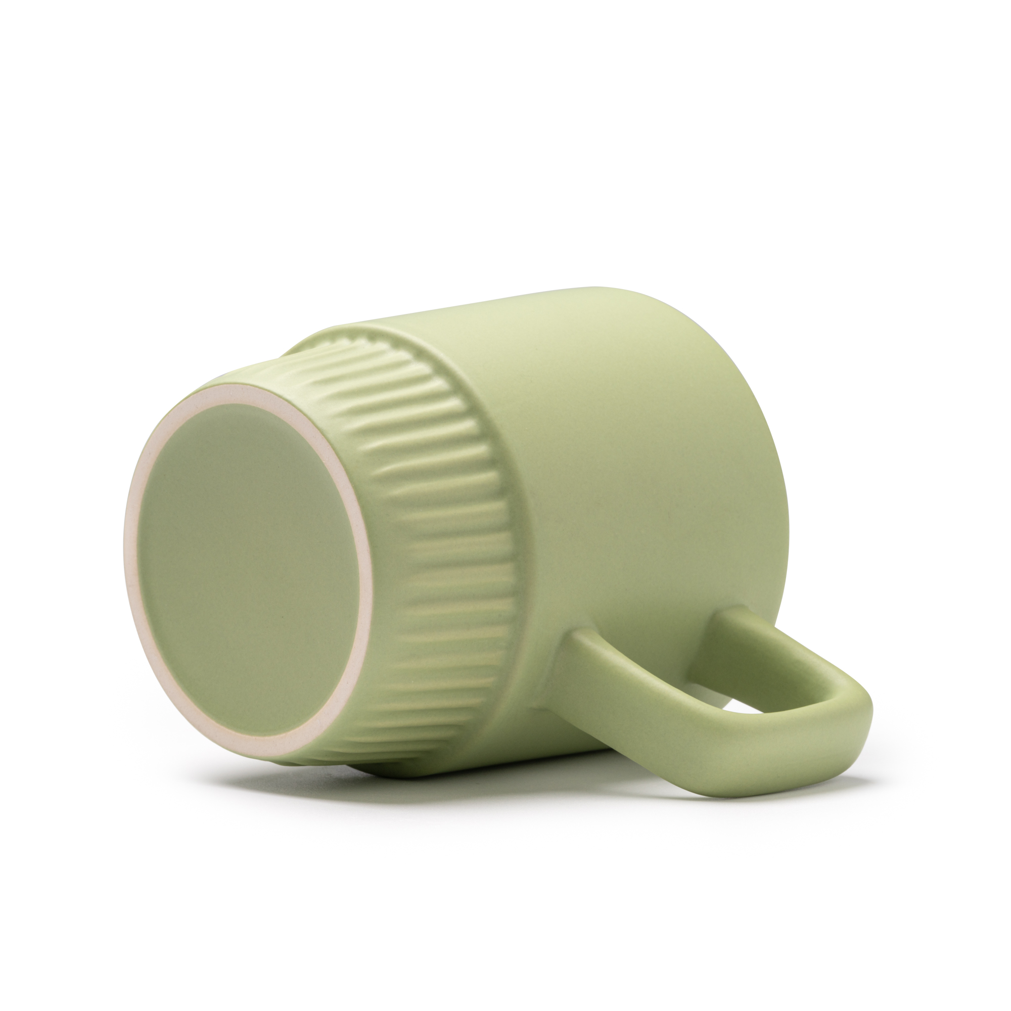 Taza de cerámica con base con diseño biselado. Capacidad 300 ml.