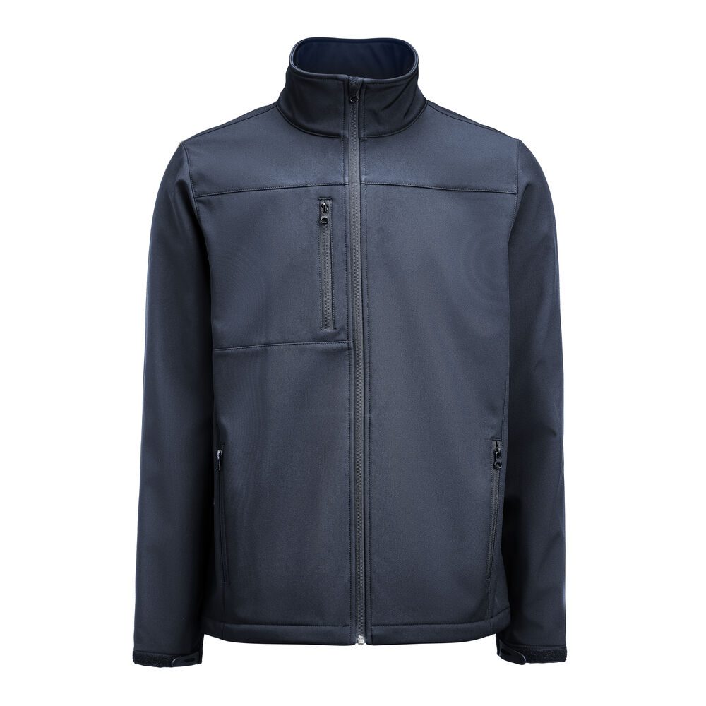 Chaqueta técnica softshell fabricada en poliéster reciclado y elastano, diseñada para ofrecer funcionalidad y comodidad. La chaqueta incluye dos bolsillos laterales con cremallera, un bolsillo en el pecho con cremallera y dos bolsillos interiores adi