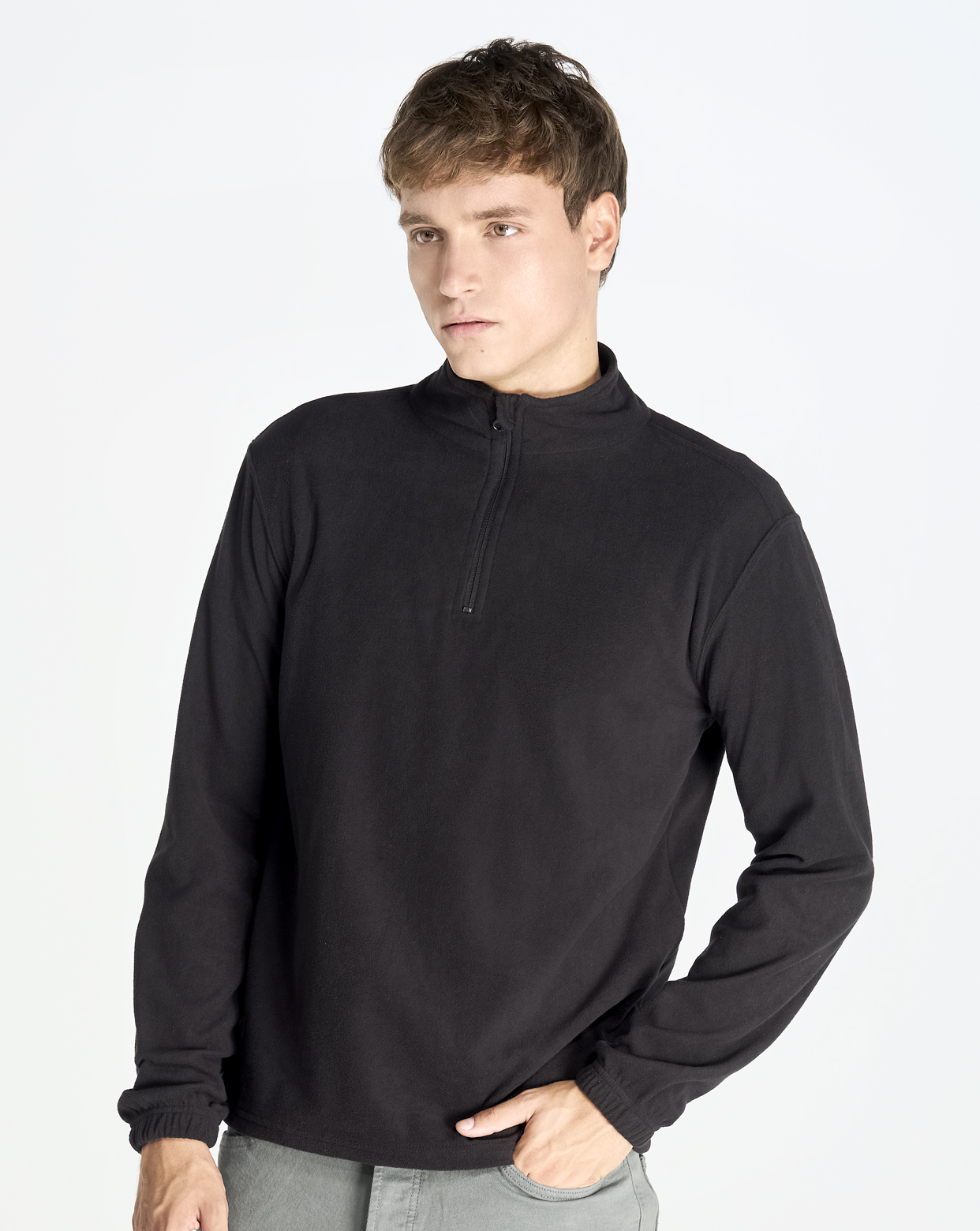 Micro polar de hombre cálido y suave, con media cremallera y elástico en puños, para actividades en exteriores. Acabado micropolar antipiling. Disponible en 5 colores desde la talla XS hasta la XXL.