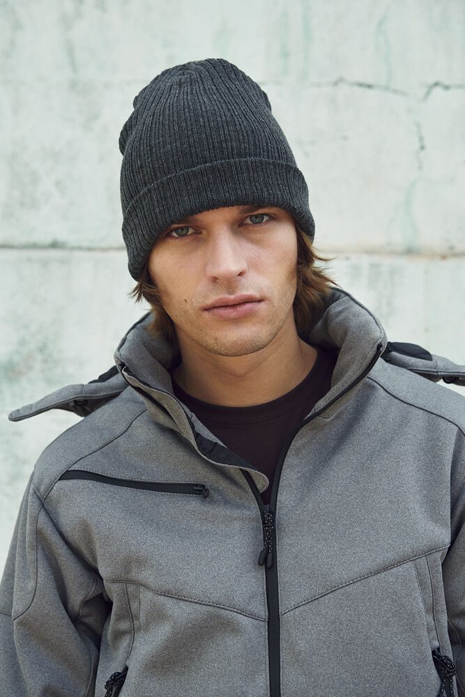 Gorro de punto con pliegue y 4 costuras en la parte superior.