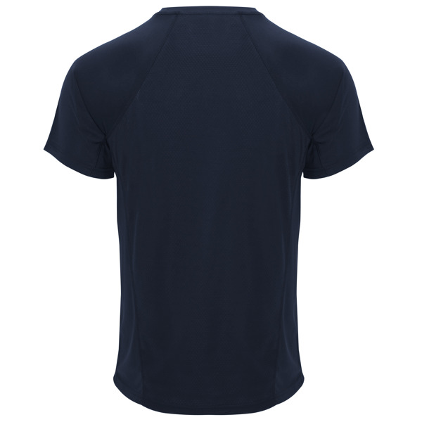 Camiseta técnica manga ranglán unisex transpirable. Combinación de tejidos.