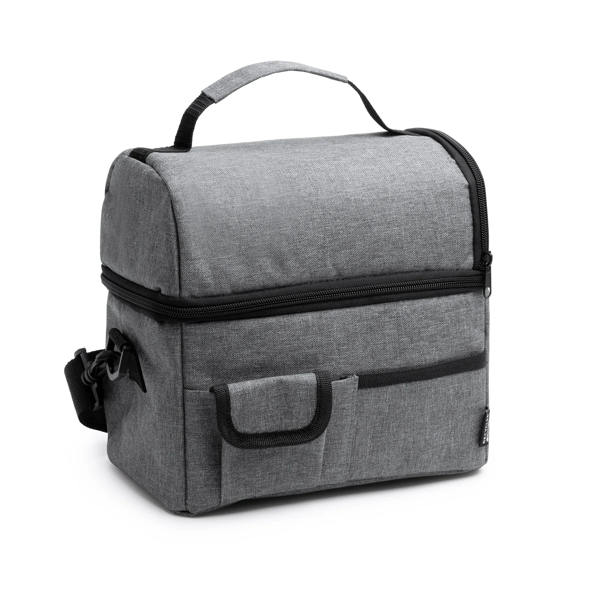 La nevera multiusos elaborada con RPET 600D es la solución perfecta para mantener tus alimentos y bebidas frescos mientras te desplazas. Fabricada con RPET, un material reciclado de alta calidad, esta nevera demuestra tu compromiso con el cuidado del medio ambiente.
