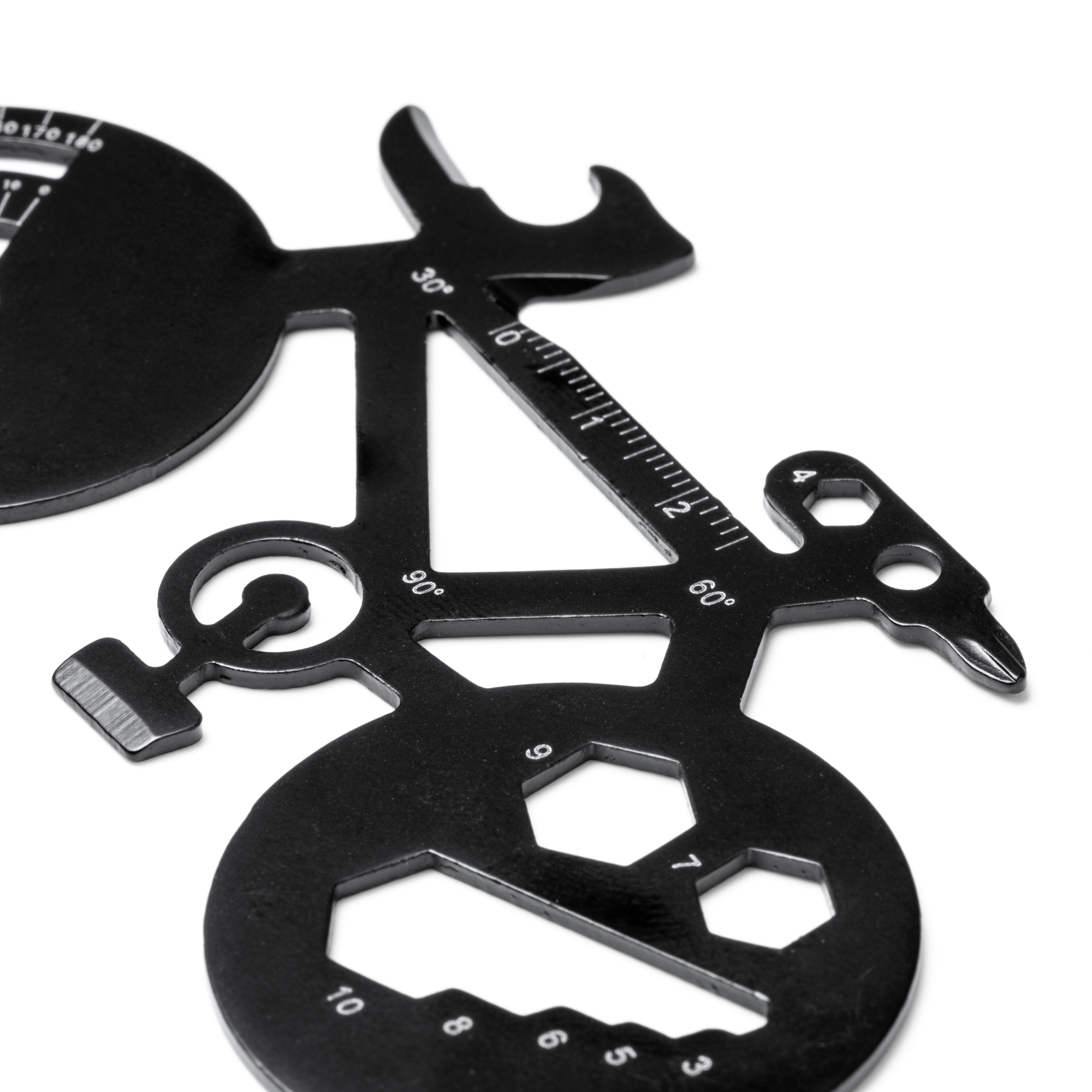 Multiherramientas de acero inoxidable con forma de bicicleta. 11 funciones: abre latas, transportador de ángulos, destornilladores, llave inglesa y reglas.
