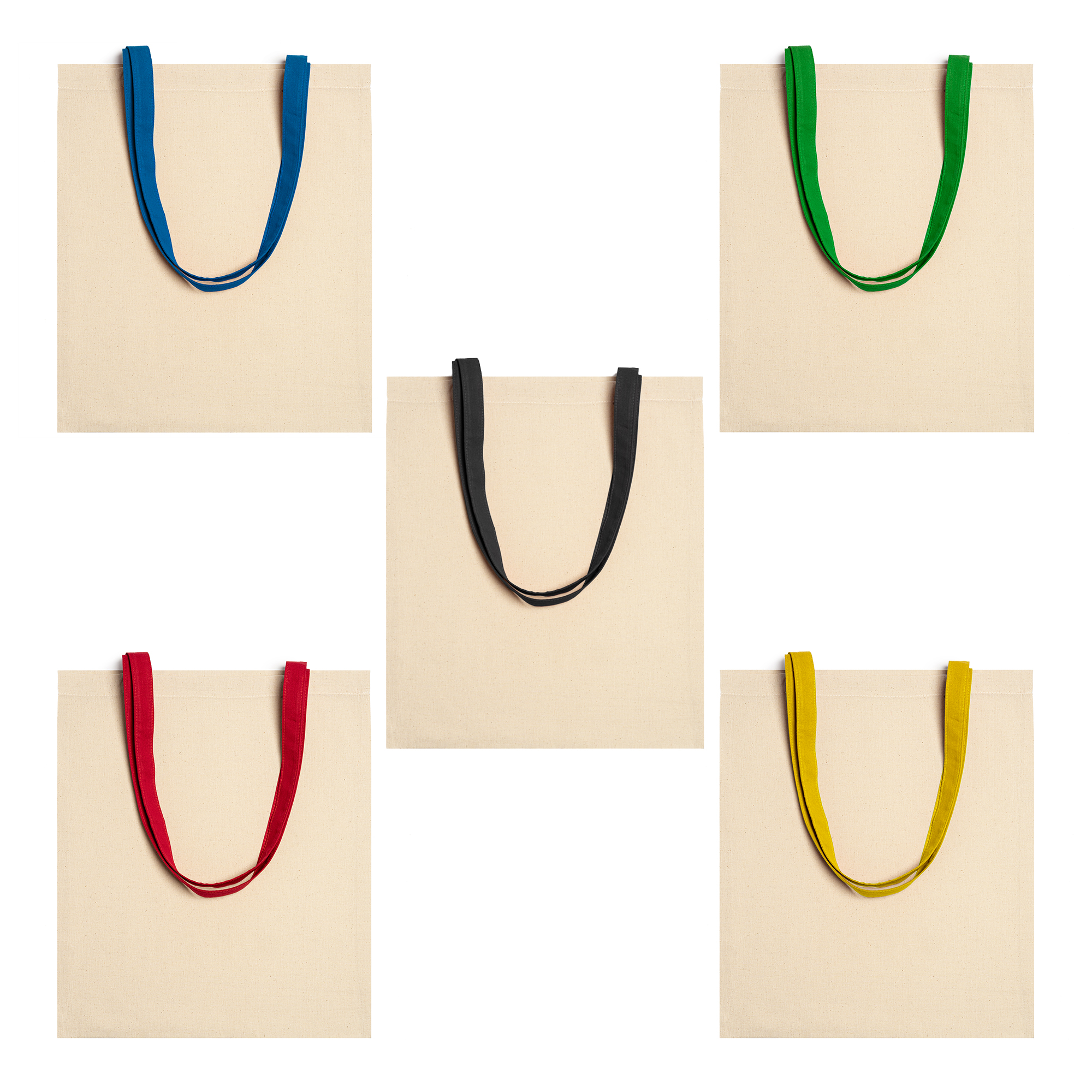 Bolsa 100% de algodón 105 g/m². Asas largas de 70 cm a color.