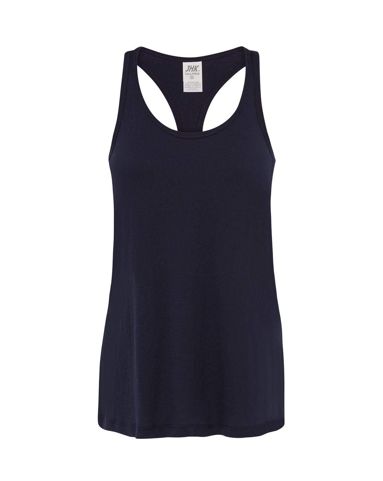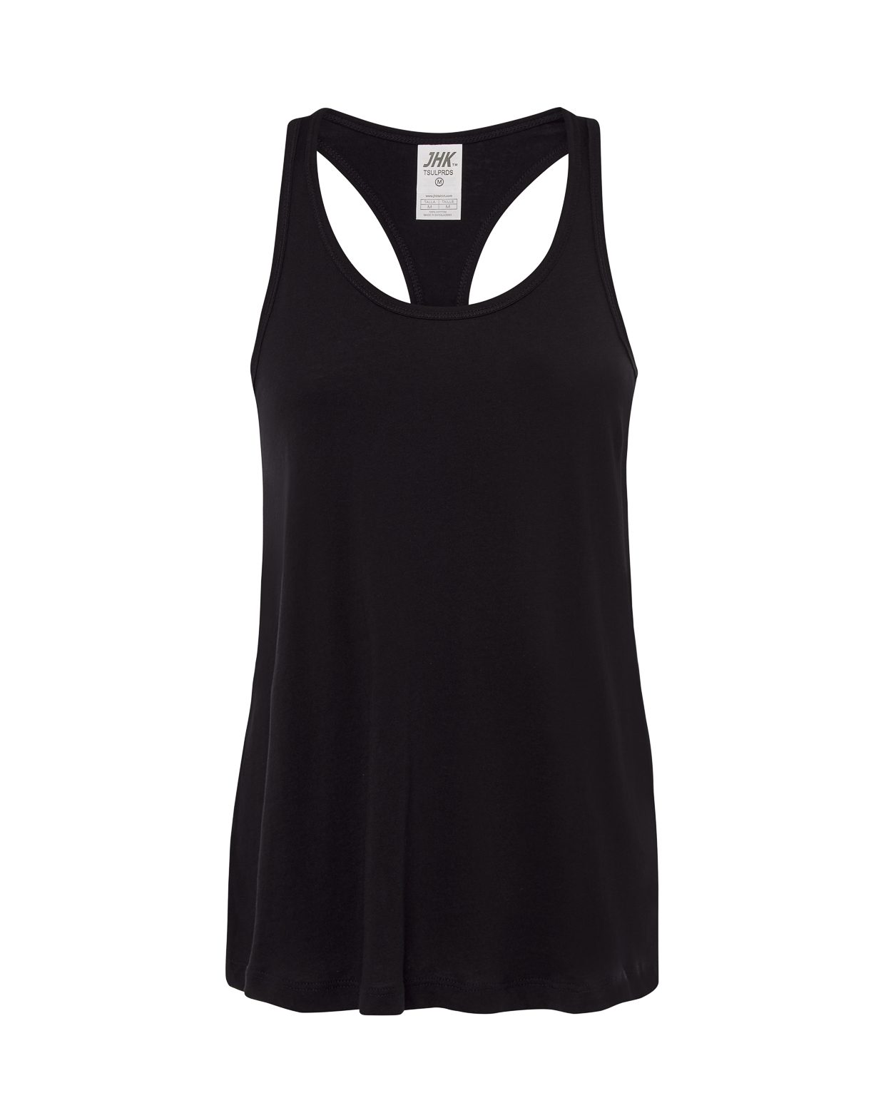 Camiseta básica de tirantes para mujer con espalda de diseño de natación, 100% algodón. Disponible en 5 colores y desde la talla S hasta la XL. Etiqueta removible.