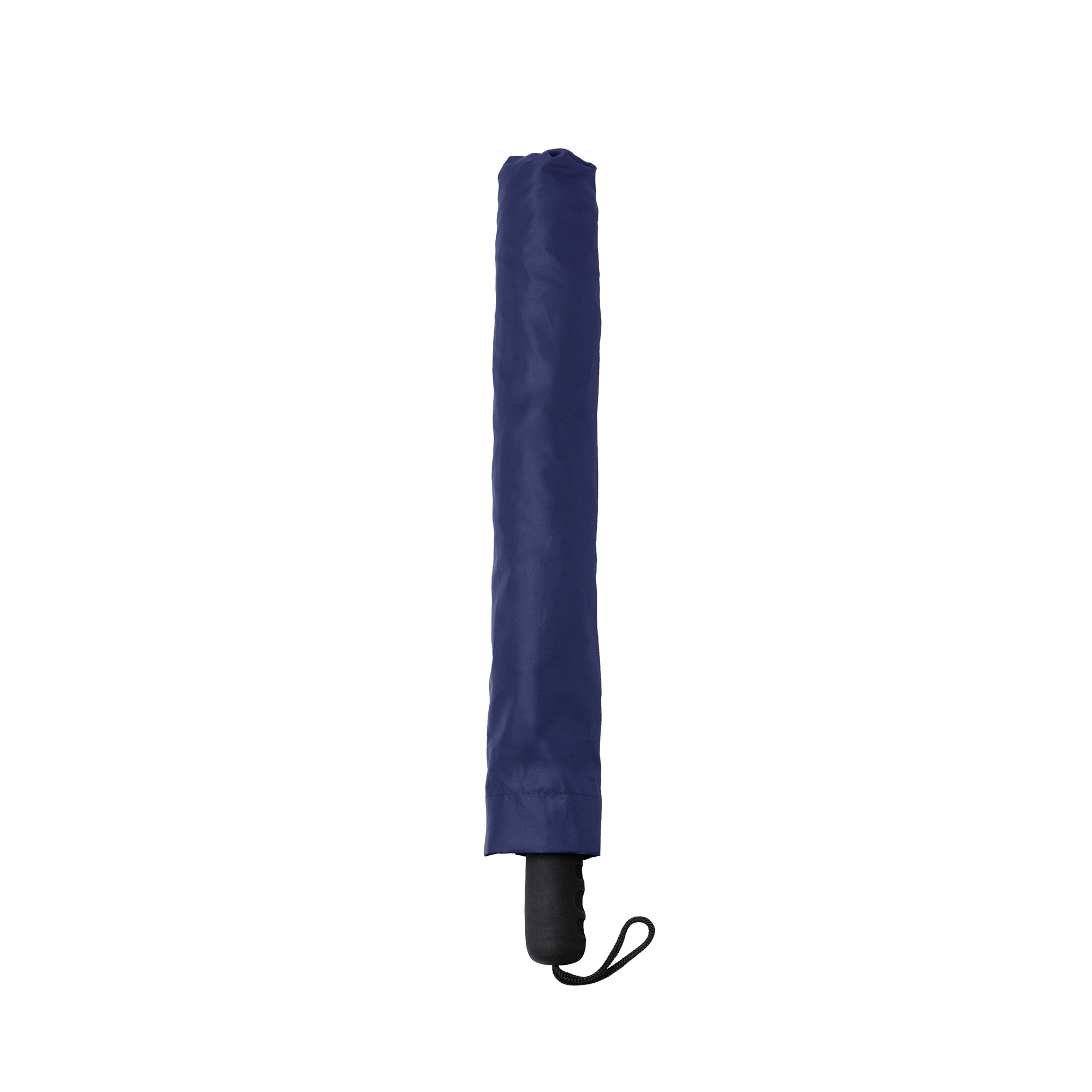 Paraguas plegable realizado en RPET con apertura automática gracias a su botón incorporado en el mango. Elaborado en tejido pongee 210T. Con varillas de fibra de vidrio con sistema antiventisca y mango en EVA. Este sistema refuerza la funcionalidad del paraguas en los días de mayor temporal. Cuenta con cierre de velcro, tira de transporte y una funda a juego.