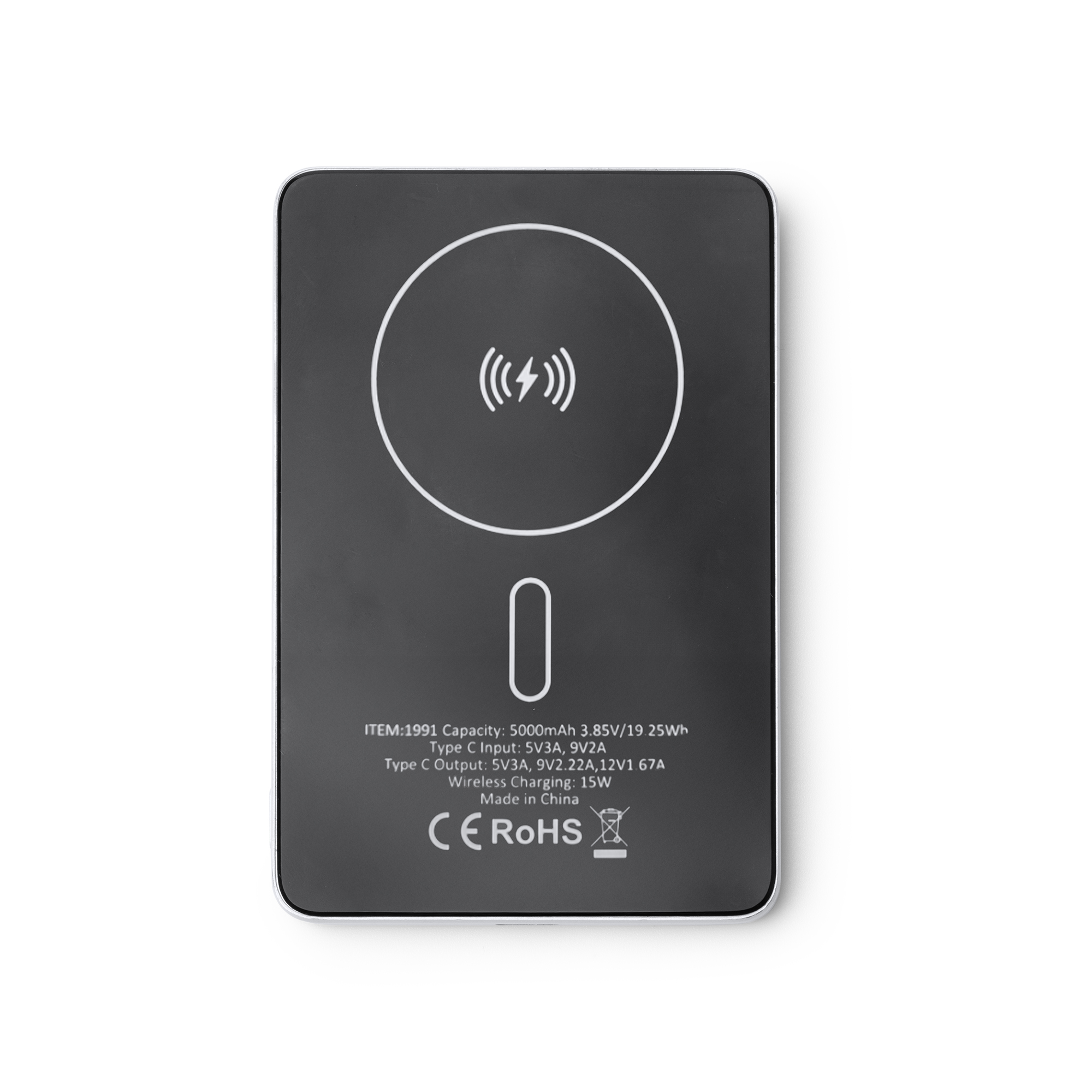 Batería externa magnética de 5.000 mAh con cuerpo elaborado en aluminio reciclado. Cuenta con una salida de carga de hasta 20W en carga con cable y 15W de carga rápida en salida inalámbrica para los dispositivos provistos de esta tecnología, lo que permite cargar dispositivos de forma rápida. Incluye pantalla con indicador de porcentaje de carga, puerto Tipo C para entrada y salida, además de anillo magnético.