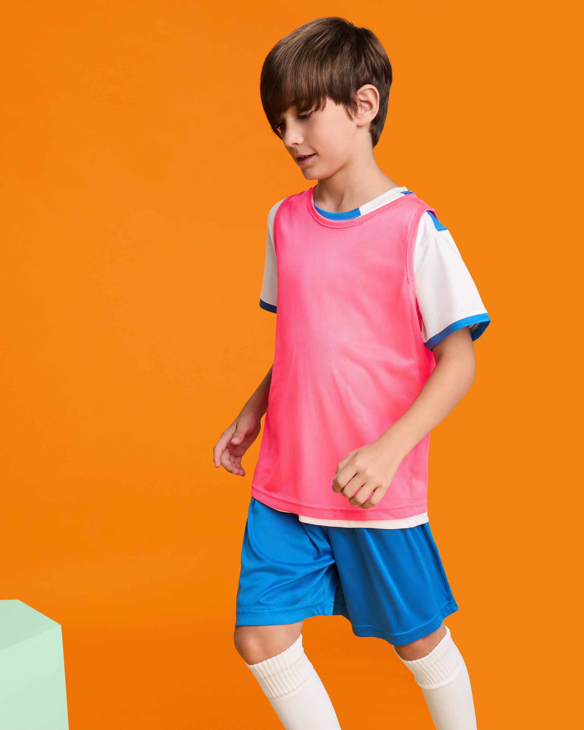 Peto deportivo unisex transpirable. Sisas y cuello ribeteados en el mismo tejido. Doble costura en el bajo.