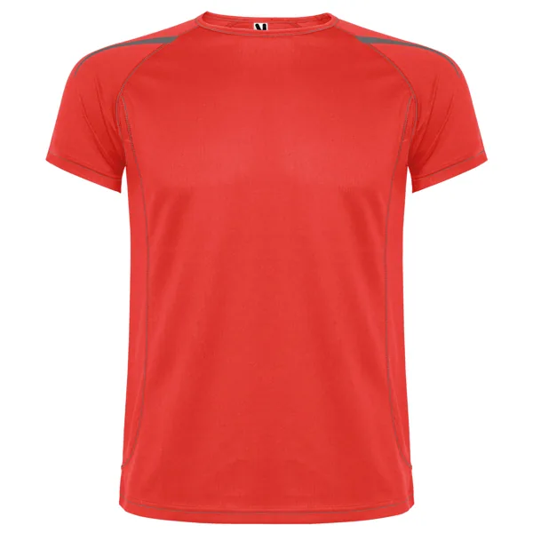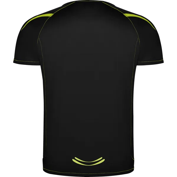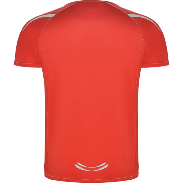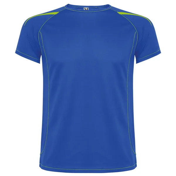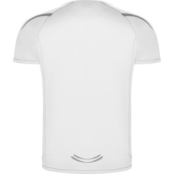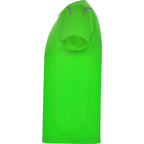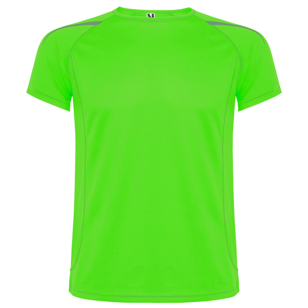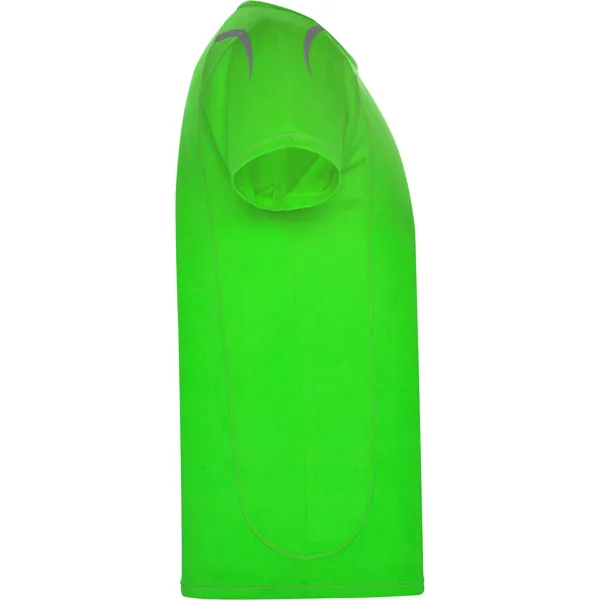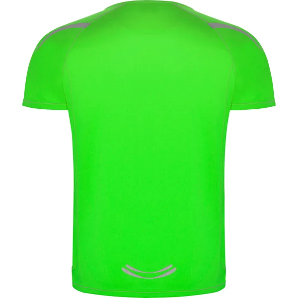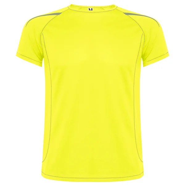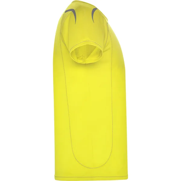 Camiseta técnica manga ranglán unisex transpirable. Costuras a contraste. Cuello ribeteado en el mismo tejido. Paneles laterales. Detalles reflectantes en hombros en todos los colores menos en negro y royal, que es amarillo flúor.