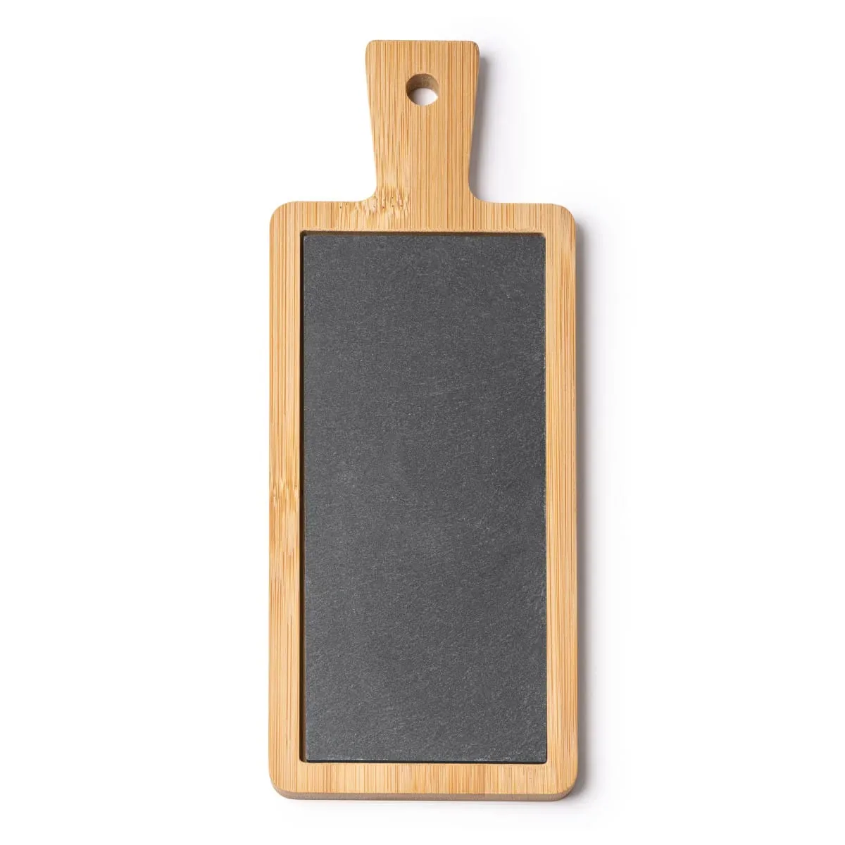 La tabla de cortar de bambú con pizarra es una opción elegante y funcional para tu cocina. Elaborada con bambú, un material duradero y sostenible, esta tabla ofrece una superficie resistente y segura para cortar tus alimentos.