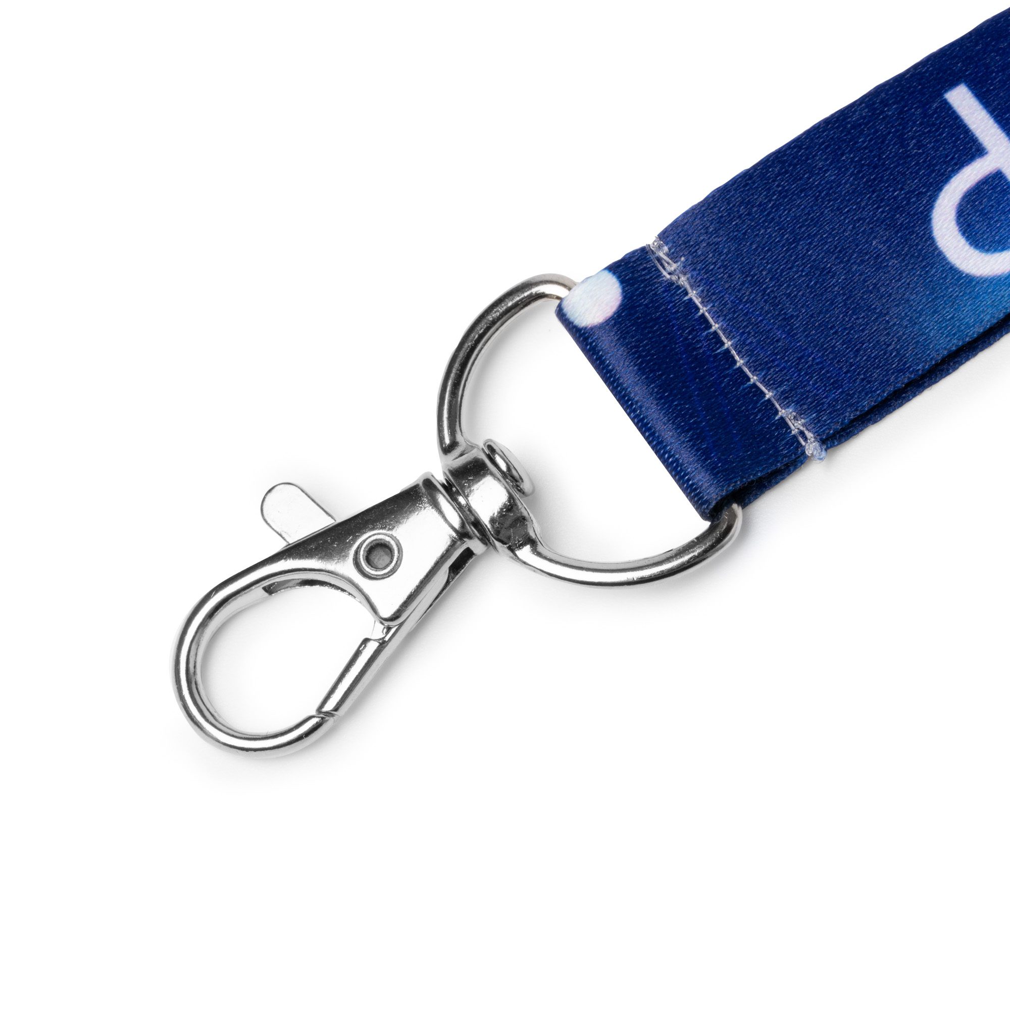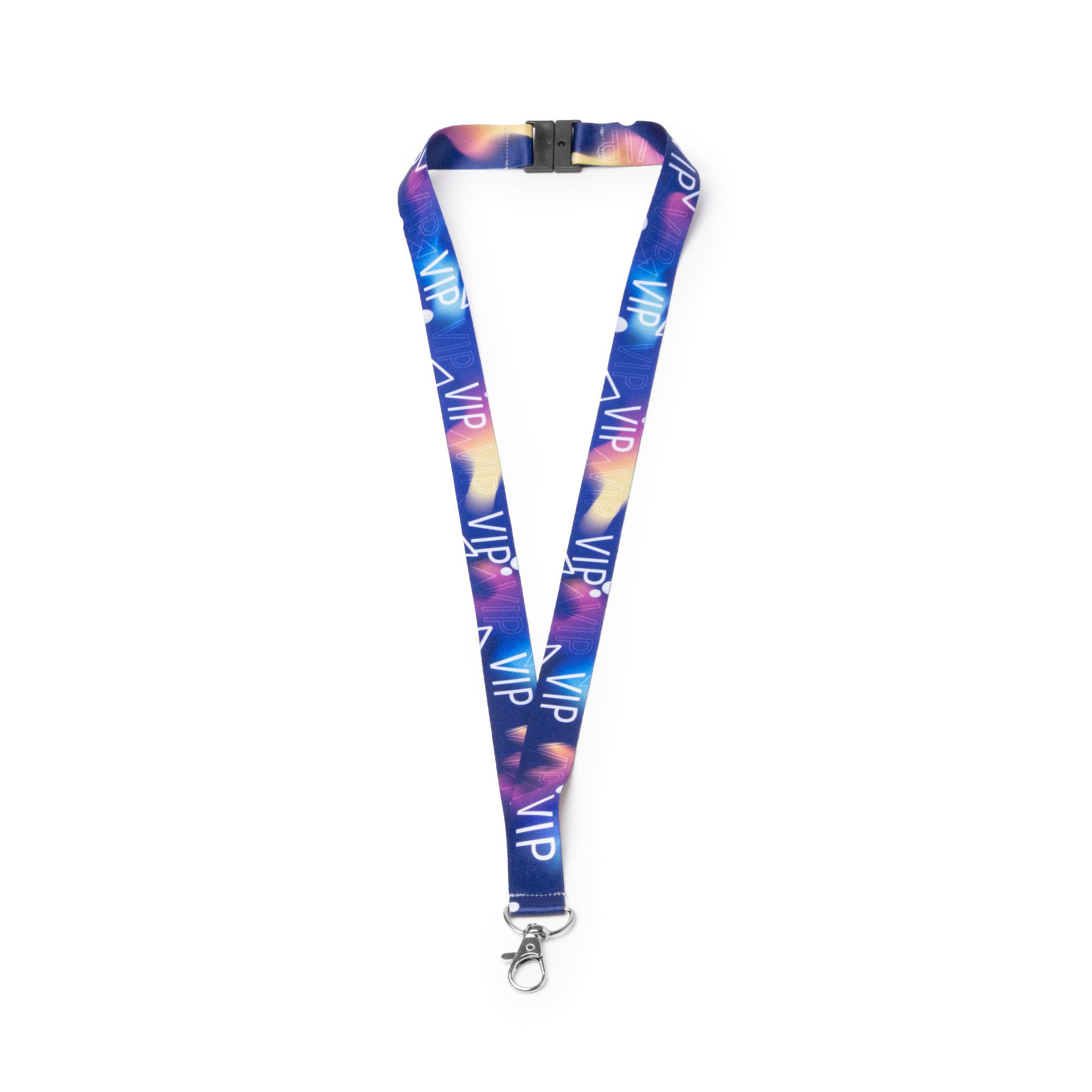 Landyard de poliéster con mosquetón y cierre de seguridad. Especial para sublimación.