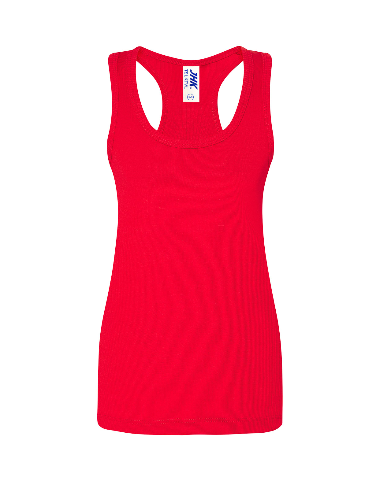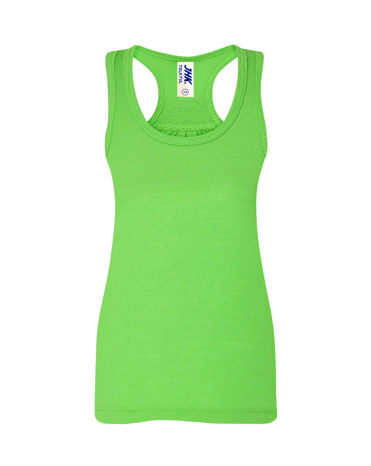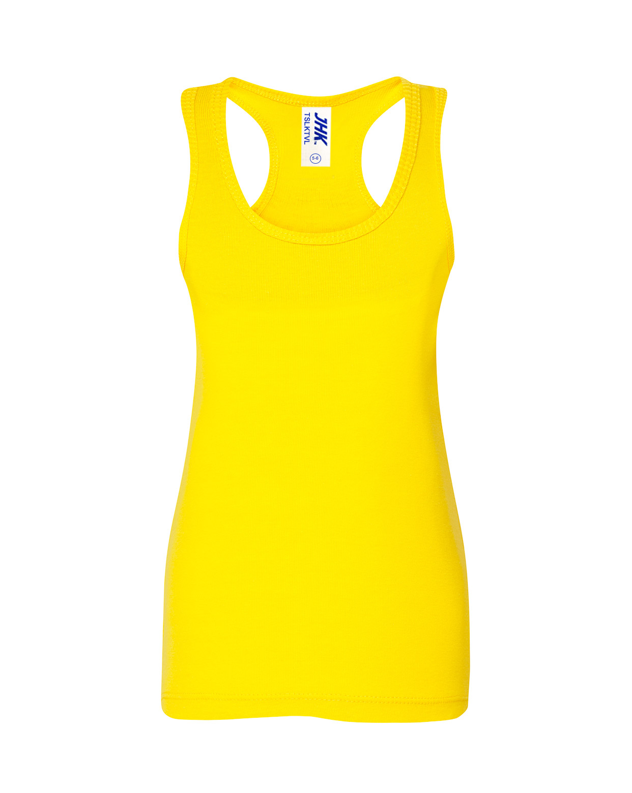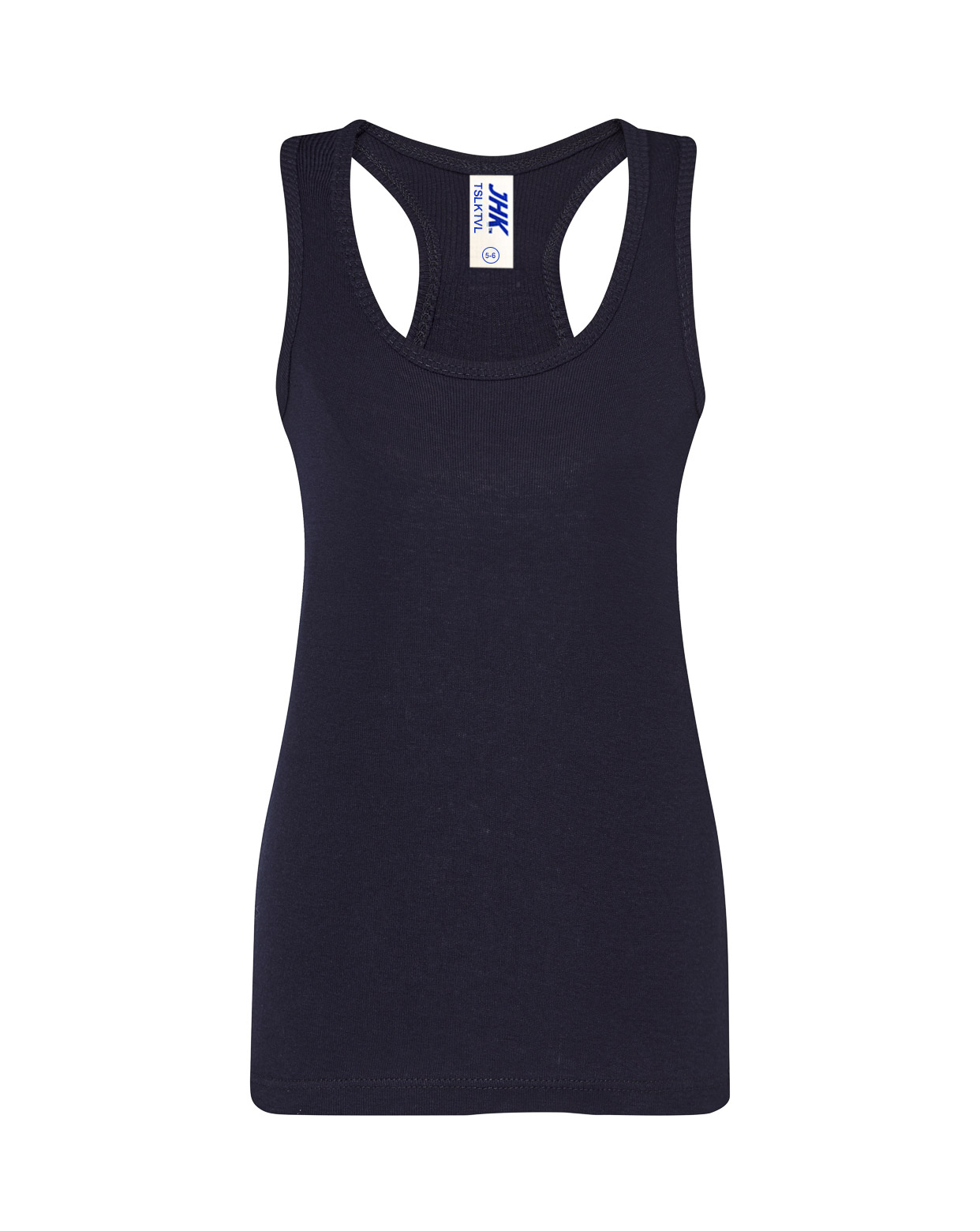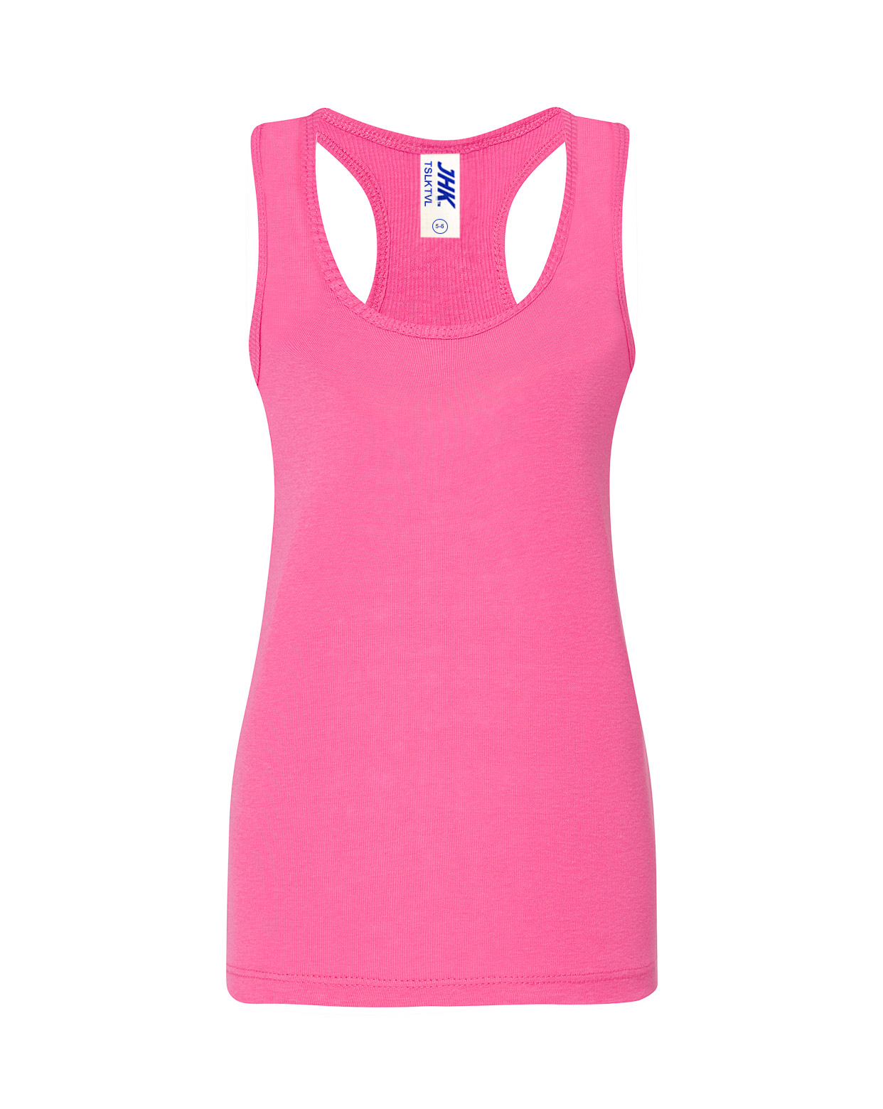 Camiseta de niña de tirantes y espalda de nadador con pliegue trasero en canalé 2×1, 100% algodón. Etiqueta removible. Disponible en 13 colores y desde la talla 3/4 hasta la 12/14.