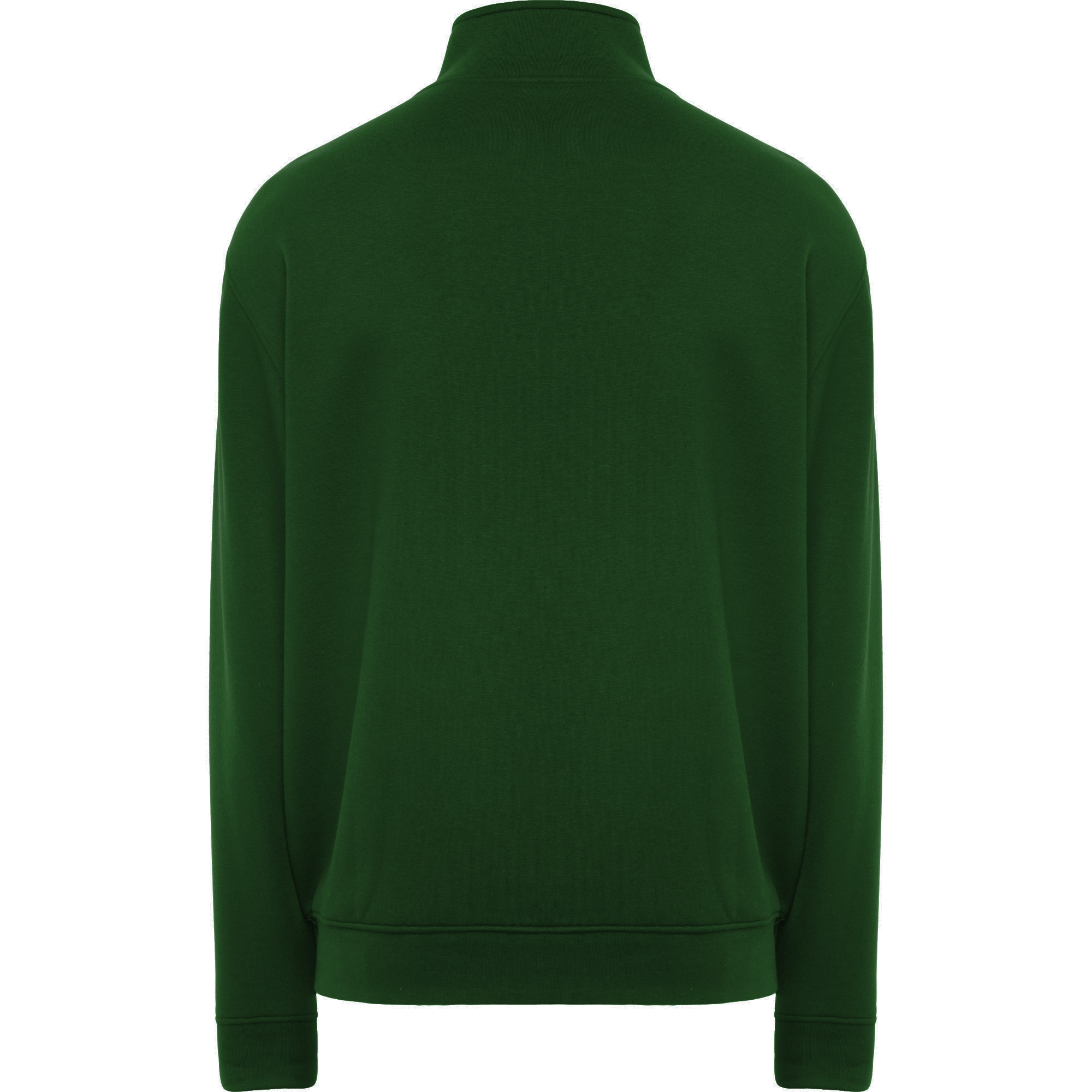Sudadera unisex con cremallera frontal y cuello alto. Cremallera al tono.