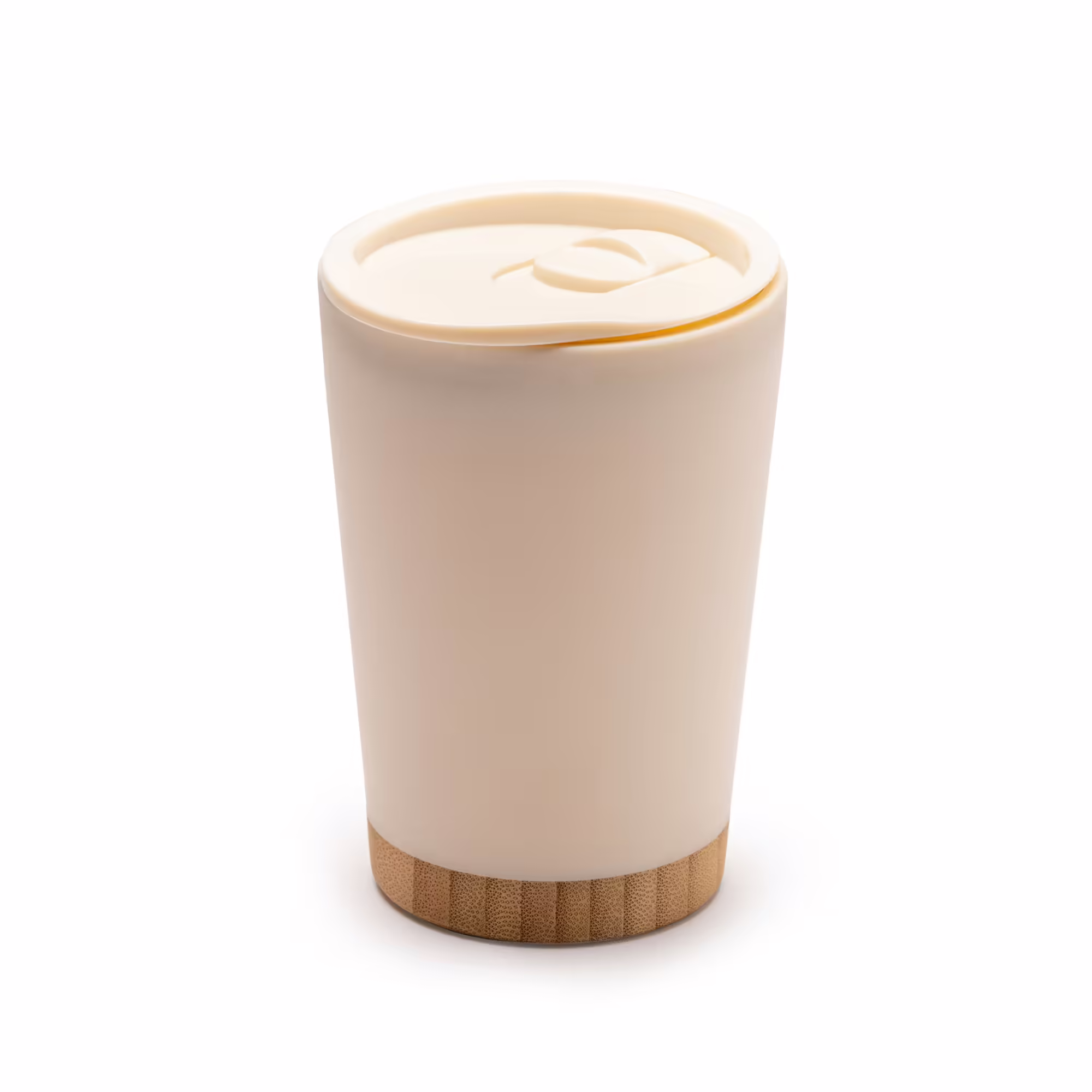 Vaso con cuerpo de PP reciclado de doble pared y base de bambú. Capacidad de 290 ml. Incluye tapa dosificadora, que le otorga seguridad ante derrames accidentales. Es una opción versátil, sofisticada y respetuosa con el medio ambiente para transportar bebidas de cualquier índole.