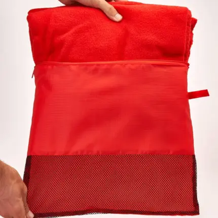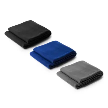 Manta de forro polar realizada en poliéster reciclado RPET con práctica funda. Con acabado anti-pilling, que reduce la formación de bolitas en su tejido.