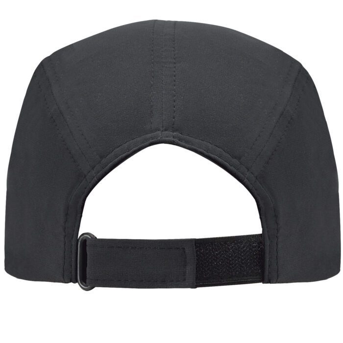 Gorra técnica de tres paneles. Tejido ligero y transpirable. Cierre ajustable de velcro en la parte posterior. Frontal especial para reprocesos.