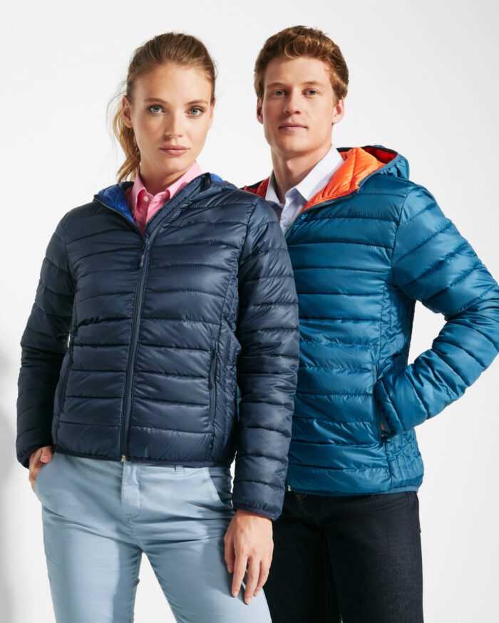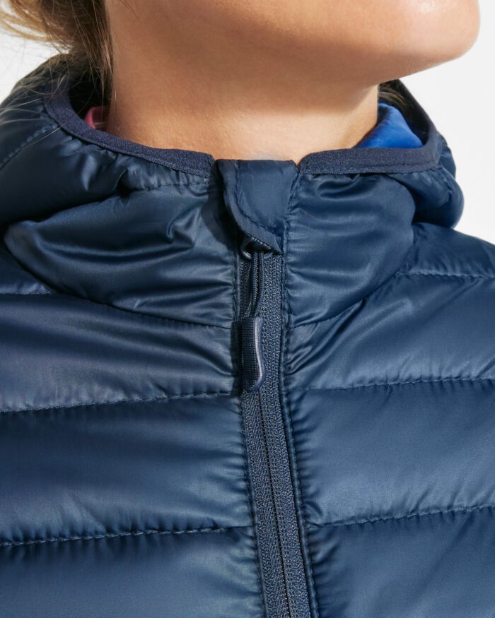 Chaqueta de mujer acolchada con relleno tacto pluma y capucha.