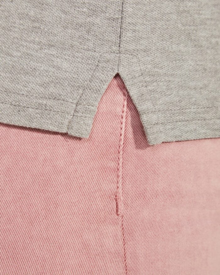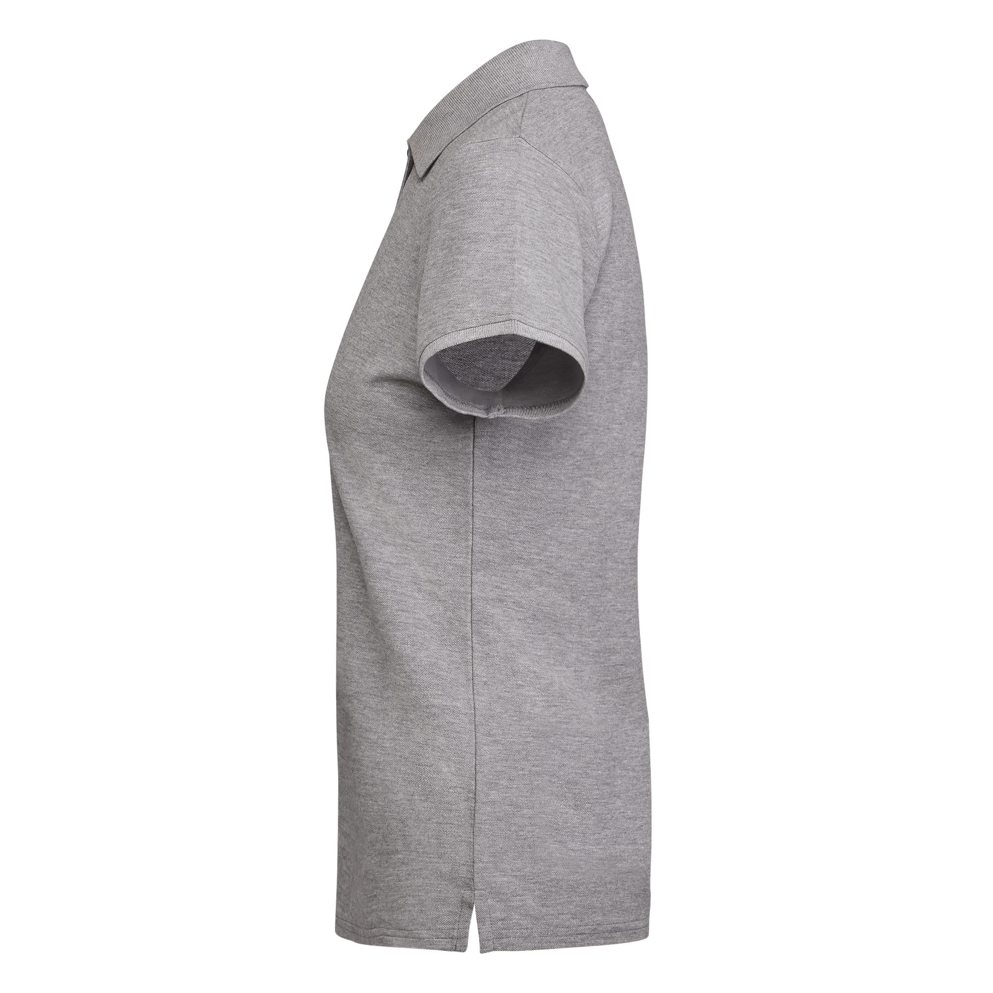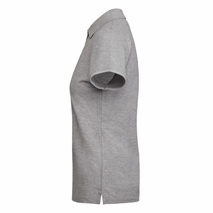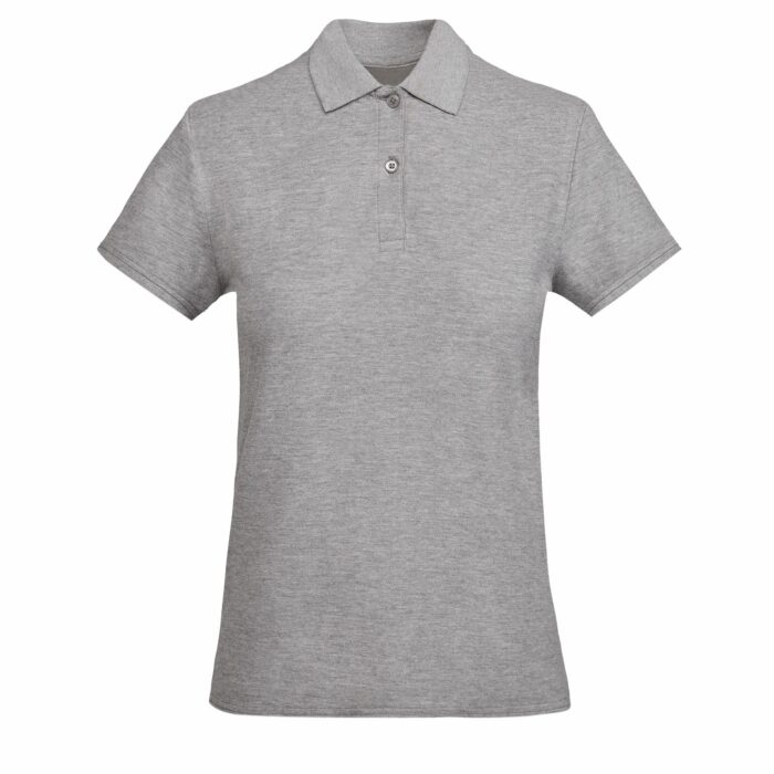 Polo de mujer entallado de manga corta en algodón orgánico certificado OCS. Cuello y ribete de mangas en canalé 1×1. Tapeta con 2 botones. Cubrecosturas reforzado en cuello. Aperturas laterales en el bajo.