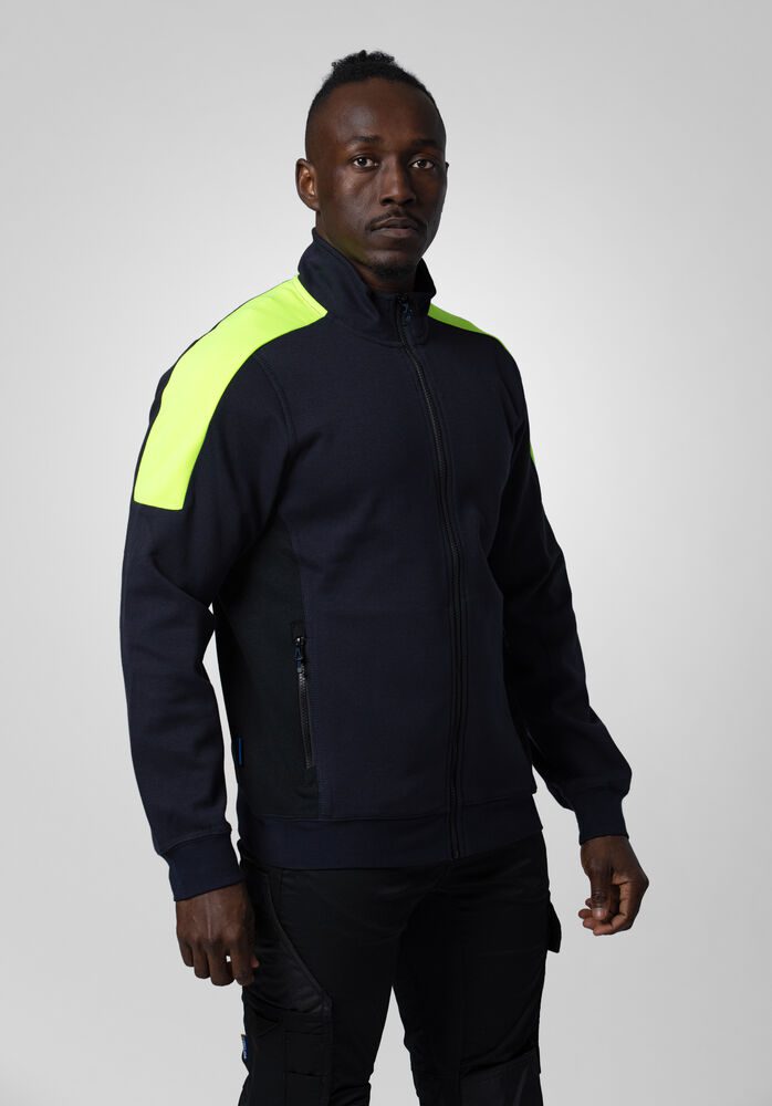 Sudadera media cremallera, dobladillo y puño acanalado. Color a contraste en los laterales.