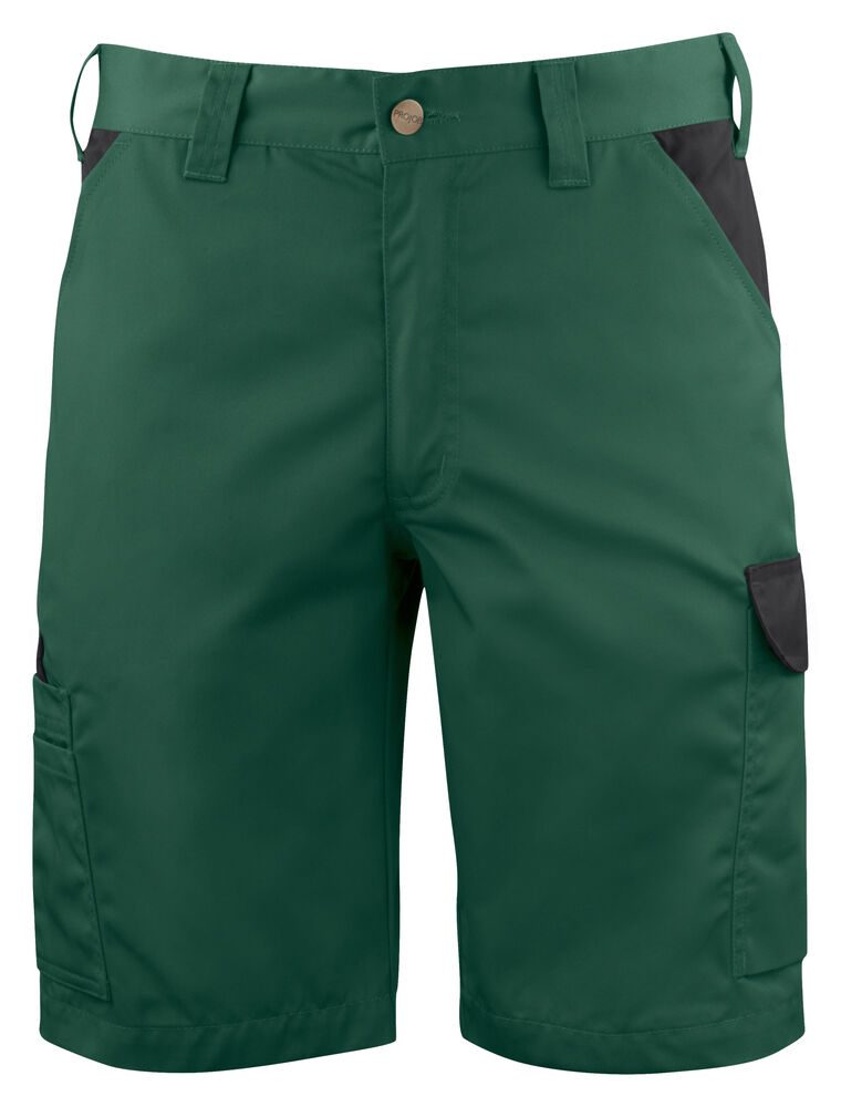 Pantalón corto con bolsillos laterales. Bolsillos en la pierna, en el lado izquierdo bolsillo con solapa y cierre de velcro y en el lado derecho bolsillos para bolígrafos y herramientas, bolsillo para cinta métrica. Bolsillos traseros con solapa y cierre de velcro. Los colores rojo-35, azul-53 y verde-66 tienen contrastes en negro.