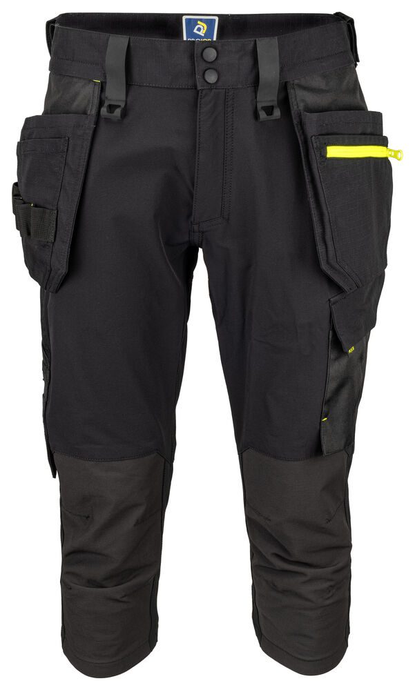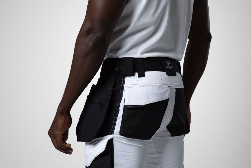 Pantalón totalmente elástico que proporciona la máxima libertad de movimiento y comodidad. Corte moderno. Los laterales de la parte superior no son elásticos para dar estabilidad al pantalón. Bolsillos tipo funda con compartimentos adicionales y refuerzo interno de Cordura®. Si se desea, se pueden quitar los bolsillos tipo funda descosiendo la costura de contraste de la parte trasera. Aberturas de ventilación en la parte posterior de la cintura. Amplios bolsillos en piernas a ambos lados. Bolsillo en la pierna izquierda para herramientas y bolígrafos, bolsillo para móvil con cierre magnético y gancho para sujetar la tarjeta de identificación. En el lado derecho bolsillo para cinta métrica y bolsillo con botón para herramientas. Trabilla más ancha en la parte trasera para evitar la presión del cinturón. Bolsillos traseros en Cordura®, uno con solapa y cierre magnético. Rodillas precurvadas. Bolsillos internos para protectores de rodillas, ajustables a dos niveles de altura. Los bolsillos y las rodillas están reforzados con Cordura® para una mayor durabilidad. Posibilidad de acoplar sistema MOLLE en ambos lados.