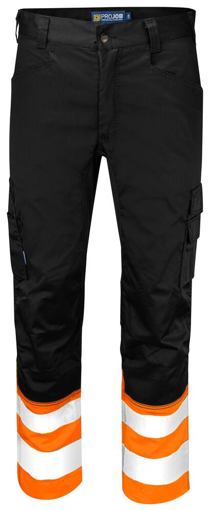 Pantalón con tejido elástico en la entrepierna para mayor flexibilidad. Amplios bolsillos laterales. Bolsillos en las piernas, en el lado izquierdo dos bolsillos con solapa y cierre con velcro, trabilla para sujetar la tarjeta de identificación. En el lado derecho bolsillo para cinta métrica y herramientas. Bolsillos traseros con solapa y cierre de velcro. La talla C42-C64 puede ampliarse 5 cm.
