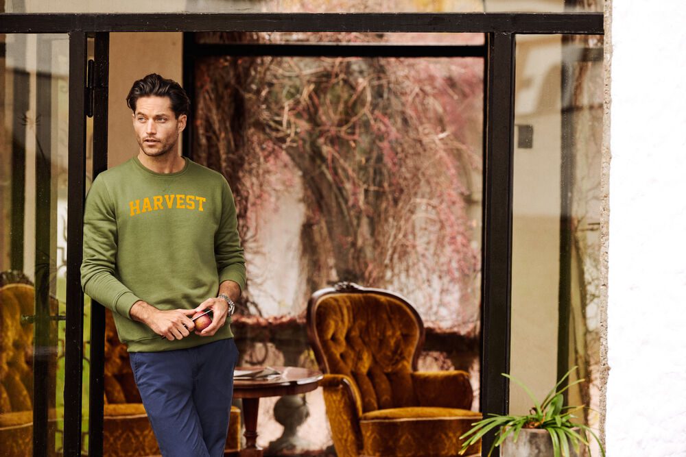 Sudadera cuello redondo estilo universitario. Afelpado en el interior. Canalé en mangas y cintura. Certificado Oeko-Tex.