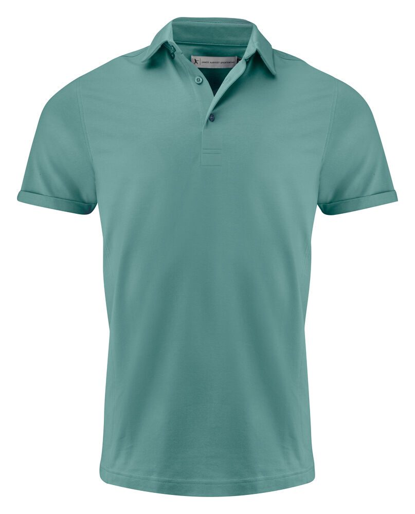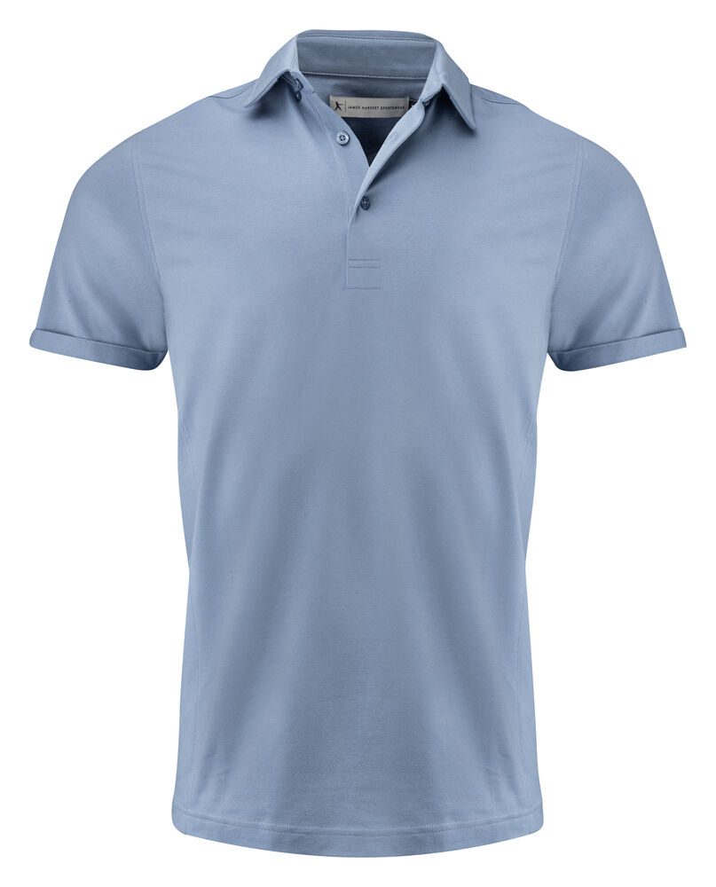 Polo elástico single jersey con cuello abotonado oculto. Final de la manga doblado para un look moderno. Paneles laterales y canesú trasero. Botones a tono con el logotipo de Harvest grabado. Ajuste mejorado. Se entrega en una bolsa de base biológica