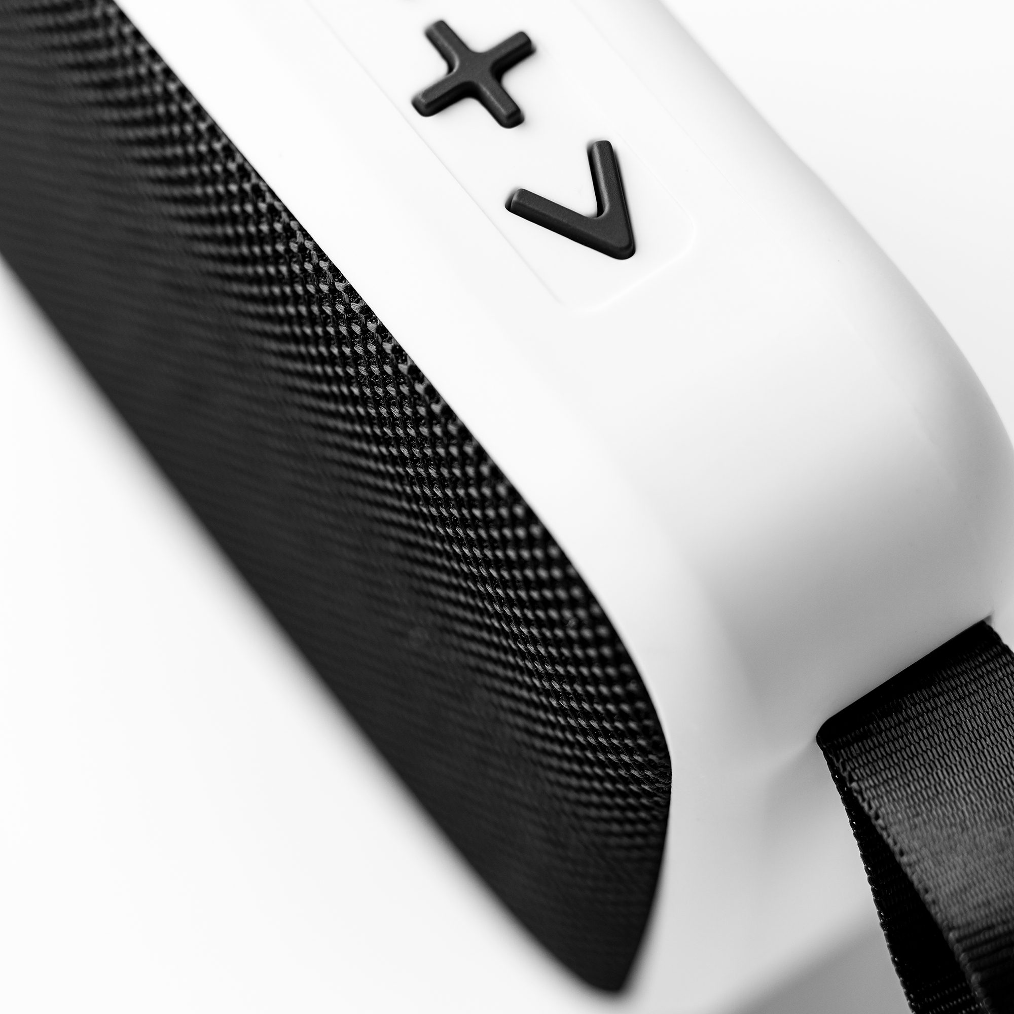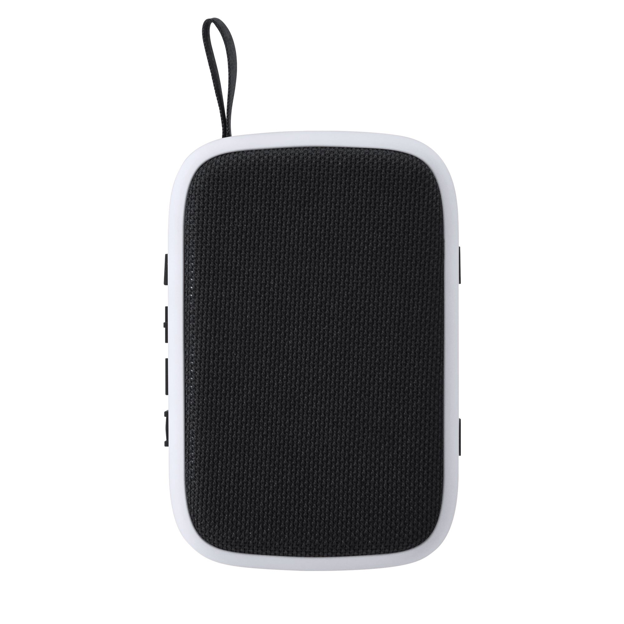Altavoz inalámbrico bicolor con Bluetooth con cuerpo acabado mate, asa de transporte, botones y tela a juego. Potencia de 3W y batería recargable. Cuenta con función manos libres, incorpora micrófono y botones multifunción para control de llamadas. Reproducción de audio Bluetooth, tarjeta MicroSD, modo radio FM y entrada de audio AUX