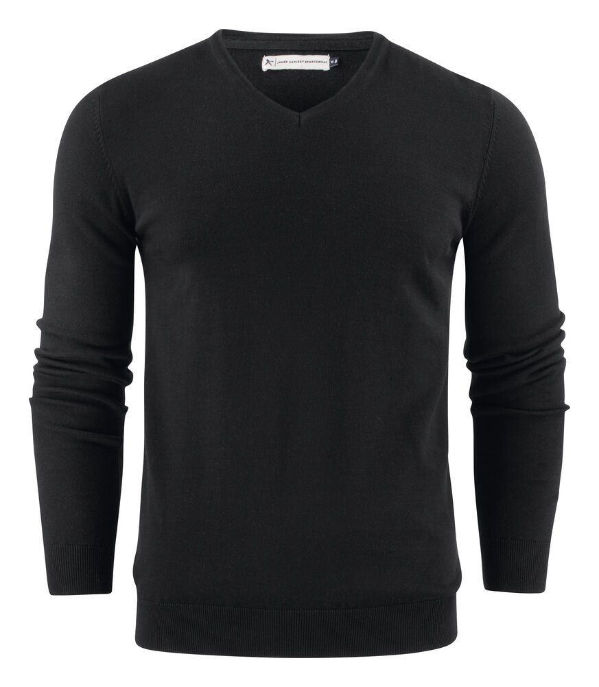 Suéter de punto con cuello en V, canalé 1×1 en dobladillo y mangas.