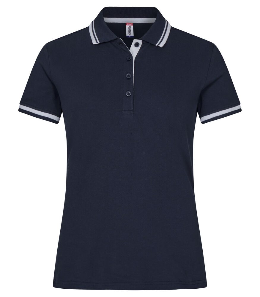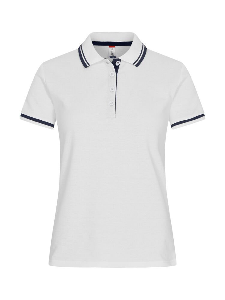 Polo piqué bicolor de manga corta para la mujer con raya a contraste en cuello y manga. Aberturas laterales y 4 botones a tono. Tapeta reforzada y de fácil re etiquetado. Combina perfectamente con Austin, Conrad y Amarillo.