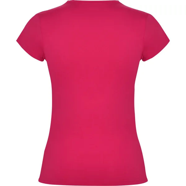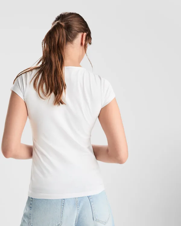 Camiseta de manga corta con elastano entallada en cintura. Cuello redondo con ribete al tono del mismo tejido.