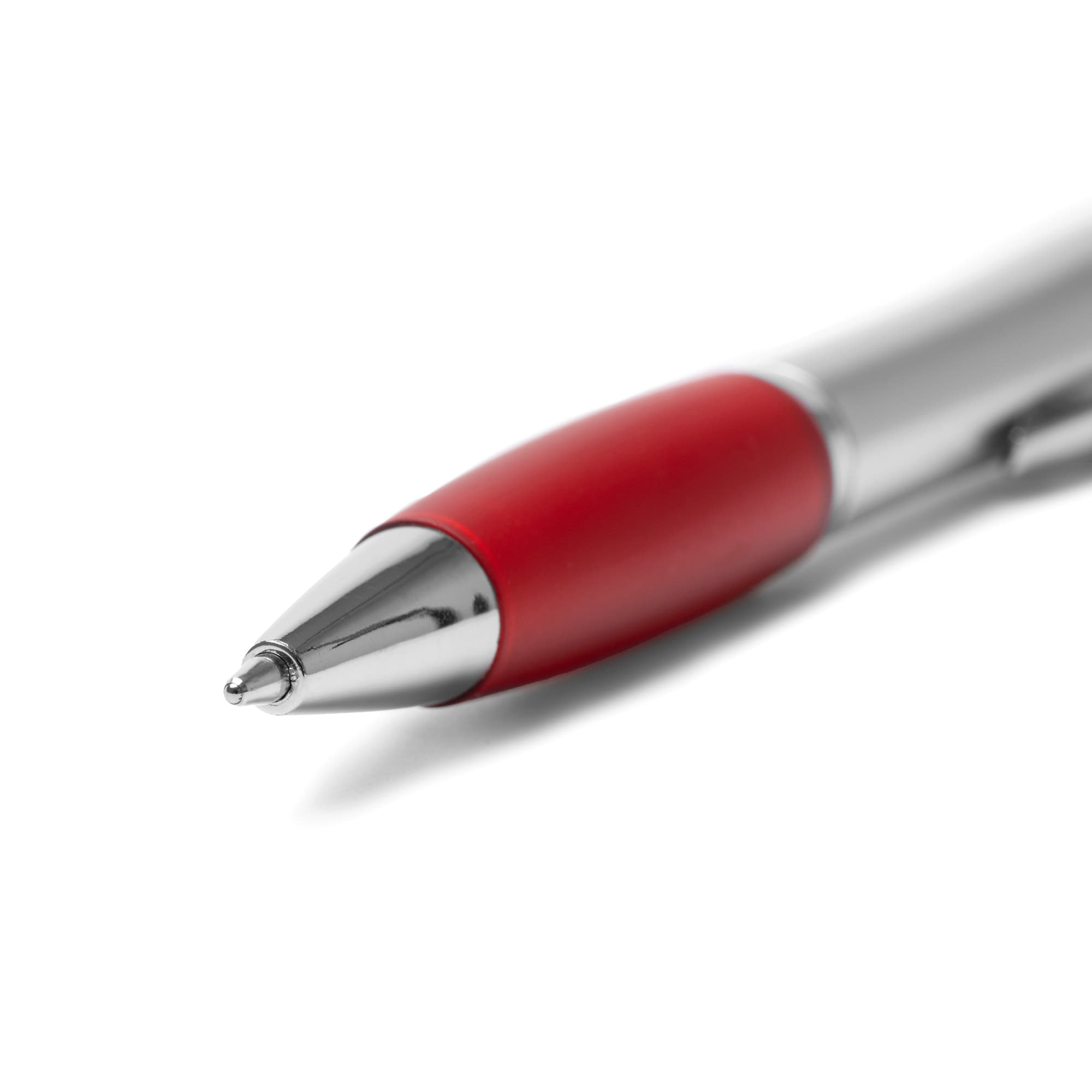 Bolígrafo giratorio con spinner antiestrés. Cuerpo elaborado en ABS y clip metálico. Cómoda empuñadura a color. Puntero táctil y acabado metalizado. Tinta azul.