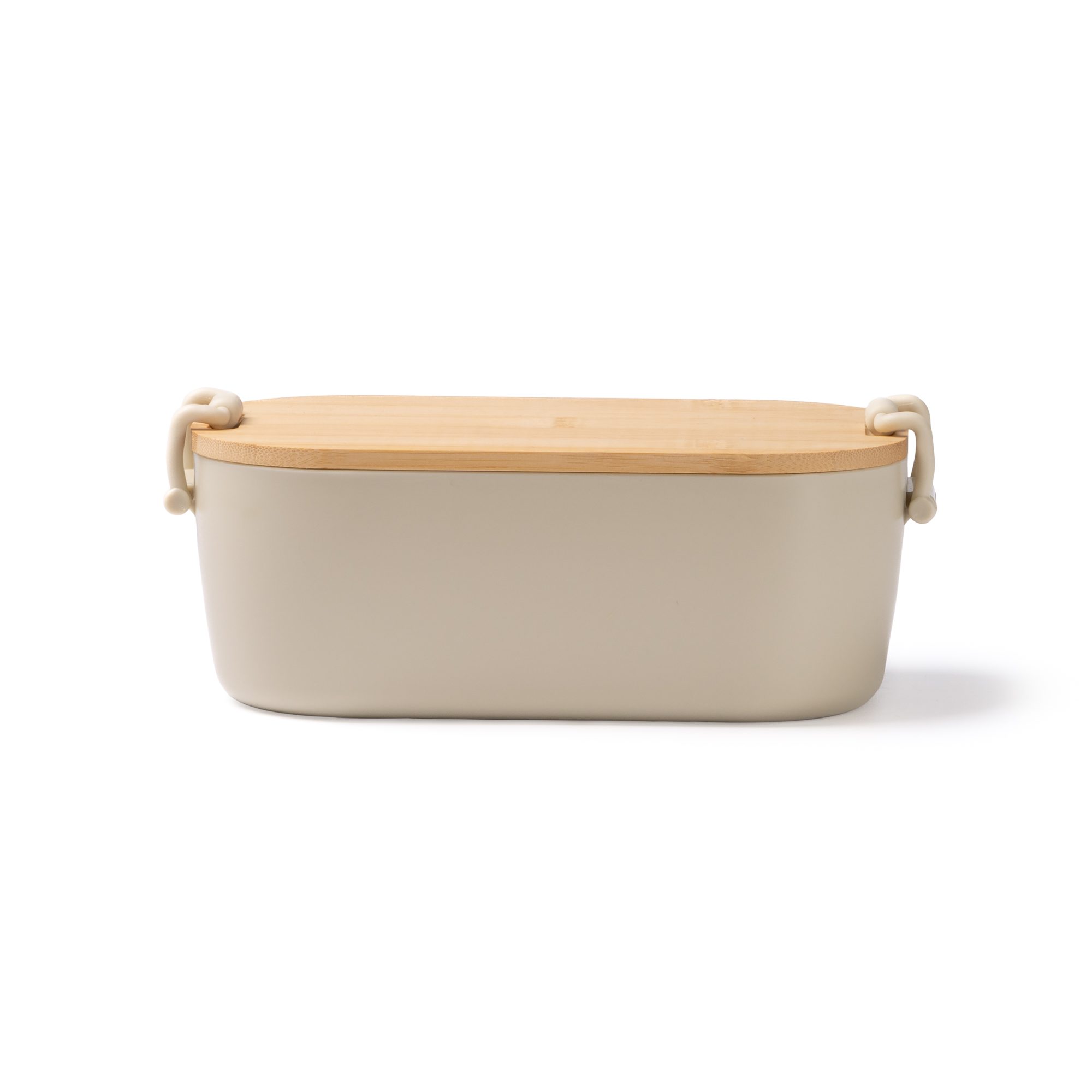 Fiambrera con cuerpo de PP y tapa realizada en bambú con cierre de seguridad. Con capacidad de 1L.